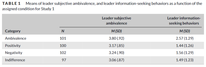 Guarana, C. L., Rothman, N. B., & Melwani, S. (2023). Leader subjective ambivalence: Enabling team task performance via information‐seeking processes. Personnel Psychology, 76(3), 913-944.