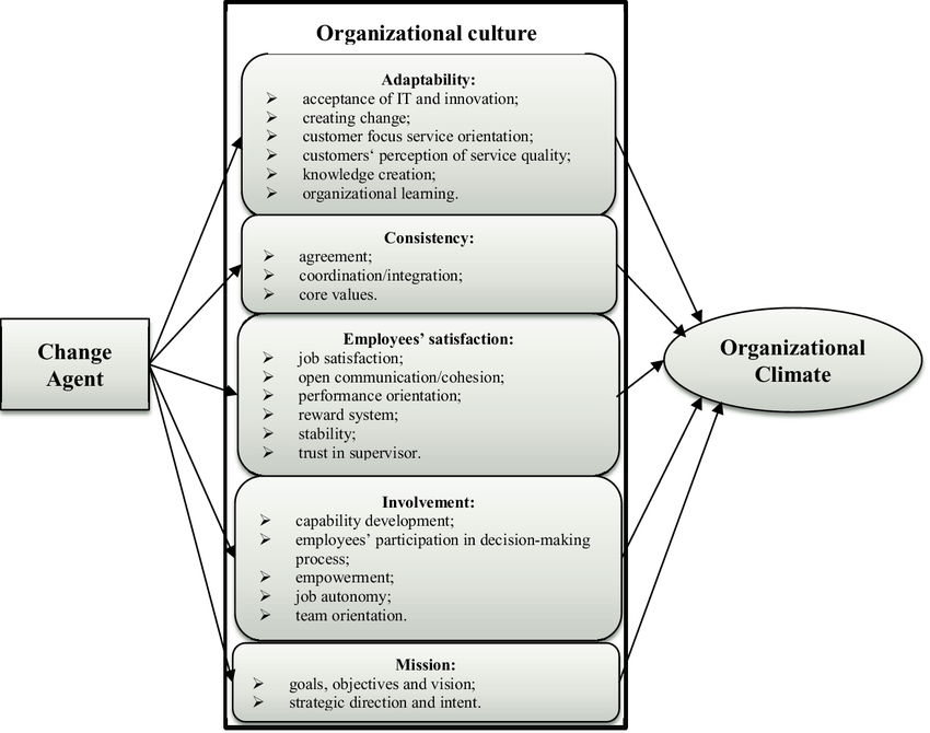 출처: Iljins, J., Skvarciany, V., & Gaile-Sarkane, E. (2015). Impact of organizational culture on organizational climate during the process of change. Procedia-Social and Behavioral Sciences, 213, 944-950.