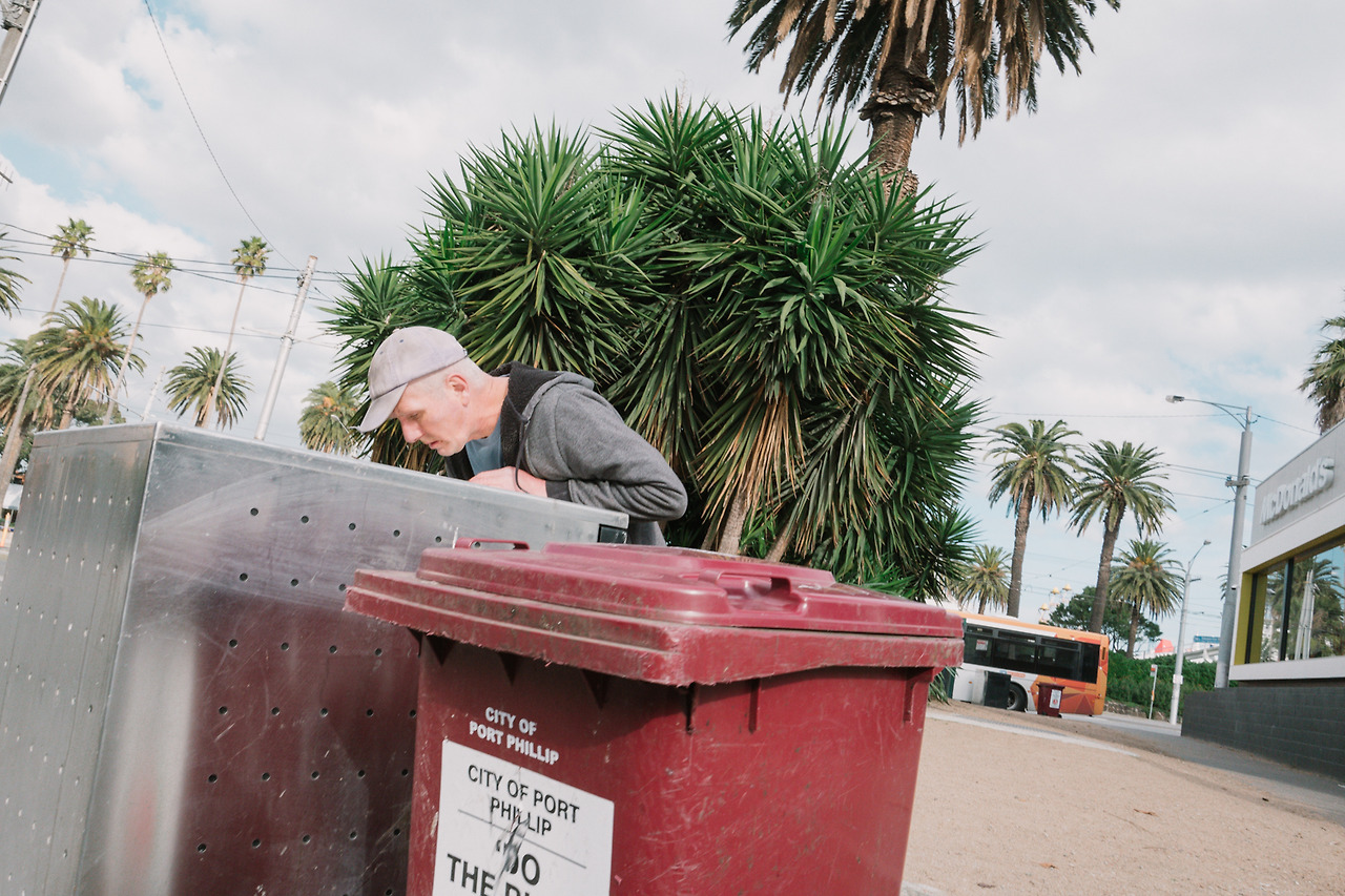 쓰레기통 뒤지는 사람. 대체로 담배 찾는다.