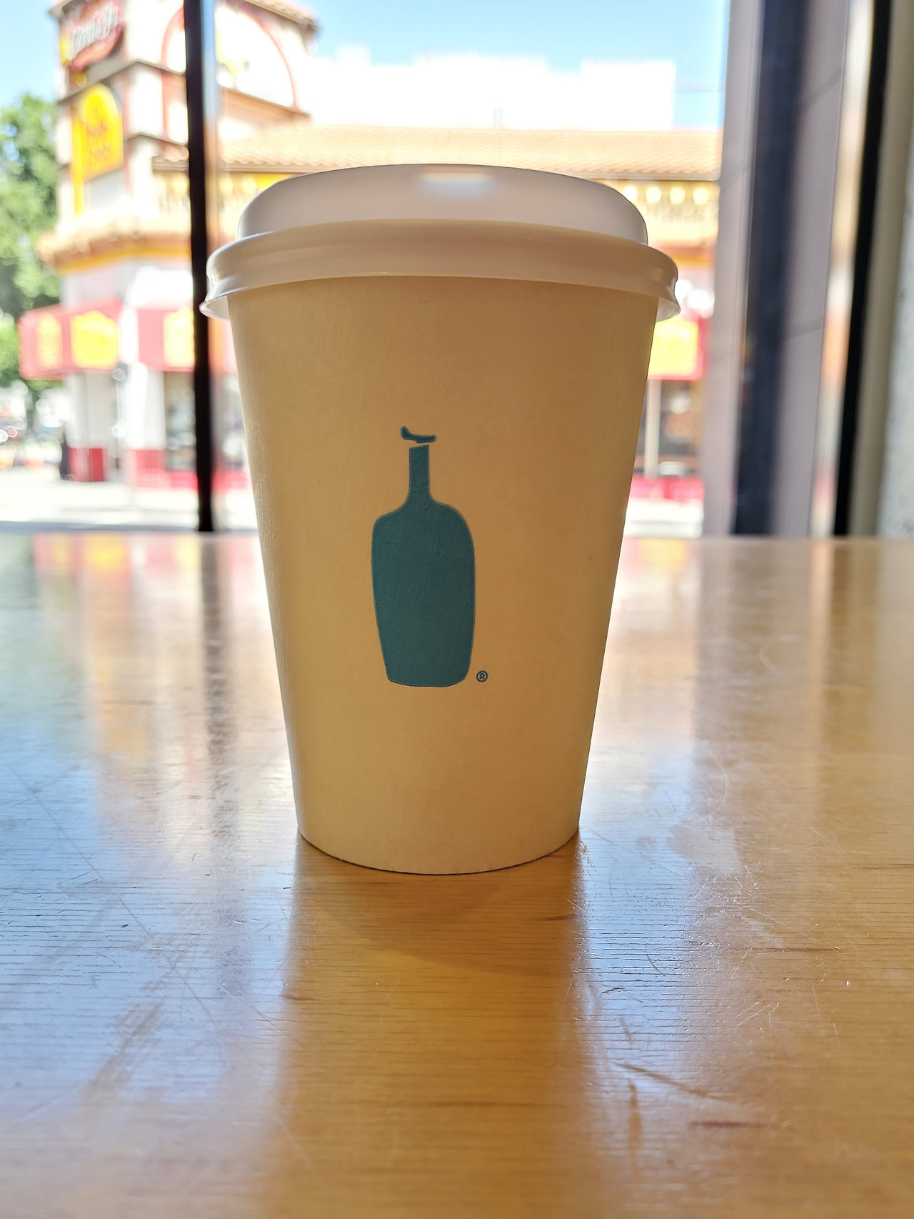 LA 시내를 돌아다니다가 블루보틀 매장에 들어갔다. 이게 그 유명하다는 푸른 병 카페란 말이지. 깔끔하고 한적한 매장에 들어가 5.5 달러 짜리 아이스 볼드 12온스 커피를 시켰다. 유명세 치고는 손님이 굉장히 적어서 대형 테이블을 나 혼자 쓰는 호사를 누렸다.