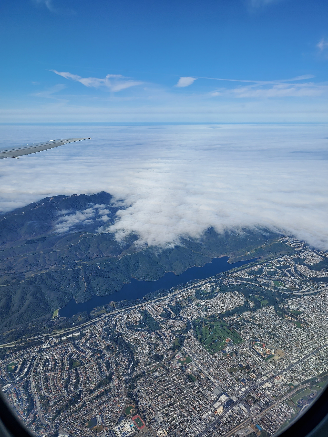 얼마나 잤을까. 시계를 보니 샌프란시스코 기준으로는 아침이었기에 그 때부터는 커피를 마시며 기를 쓰고 깨어 있었다. "고히 오네가이시마스 (커피 주세요)." 창밖을 보니 땅이 보였다. 미국이구나. 주거 지역 바로 옆에 진부한 표현이지만 끝이 없는 산맥이 이어지고 있었다. 자연, 그것도 그냥 자연이 아니라 대자연이구나 하는 생각이 절로 들었다.