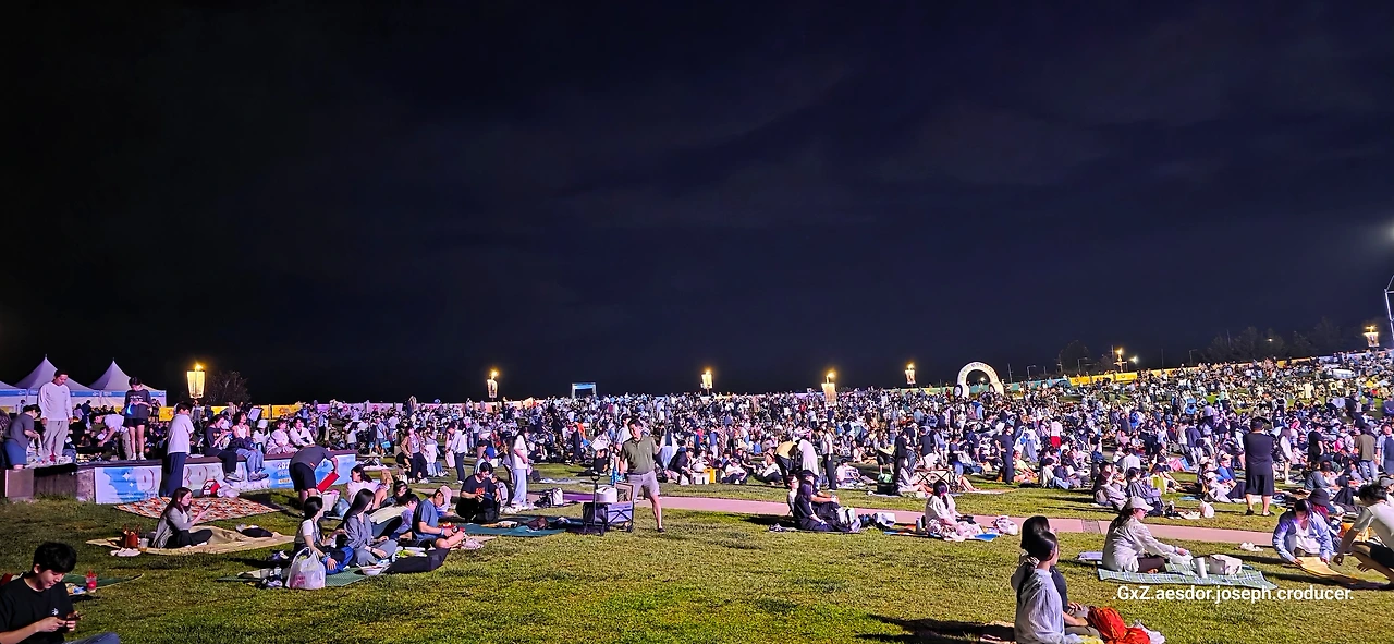 아름다운 야외풍경속 펼쳐지는 관객들의 여유있는 모습들,