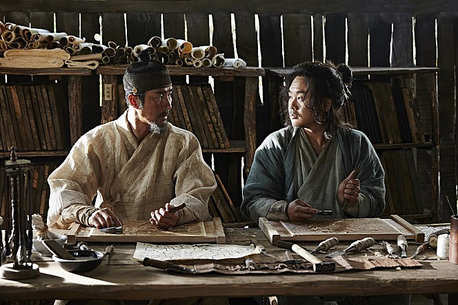 그런데도 <고산자>가 원톱 주인공인 김정호를 바라보는 시각은 상대적으로 얄팍하다. 그가 '지도에 미친 지도장이'가 된 과정을 단지 '나라에서 배포한 틀린 지도 때문에 아버지를 잃은' 플래시백으로 간단히 설명한다. 목판 제작 과정에 대부분 비중을 할애하다 보니 김정호가 혼자 팔도를 유랑하며 느꼈을 사명감이나 고독감은 좀처럼 제대로 드러나지 못한다. 영화 초반, 마라도에서 제주도, 여수, 북한강, 설악산, 백두산 천지 등 수려한 경관 속 김정호의 여정은 말 그대로 한 폭의 그림이지만, 서사와는 동떨어진 채 그저 서비스로 제공된 화보 영상으로 기능할 뿐이다.