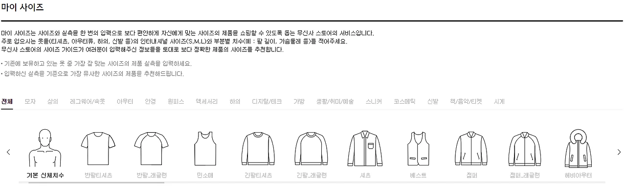(출처 : 무신사 마이 사이즈)