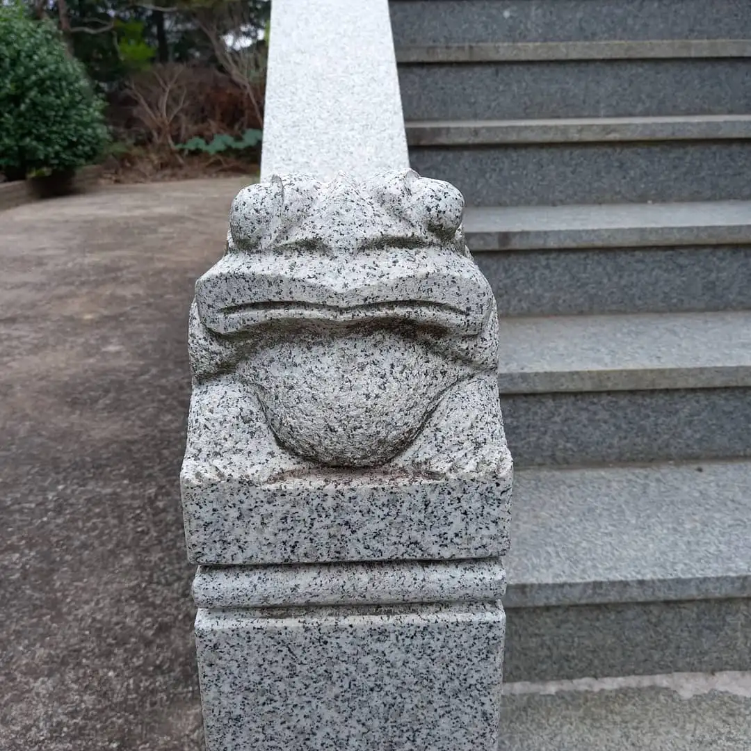 시골집 입구에 위치한 계단 난간에도 두꺼비가 조각되어 있다. 가족들의 건강과 가정의 번영을 기원하며 조상들이 설치한 조형물이다. 그 덕택인지 우리 후손들은 온 지구를 휩쓰는 괴질 속에서도 꿋꿋이 살아남았다.