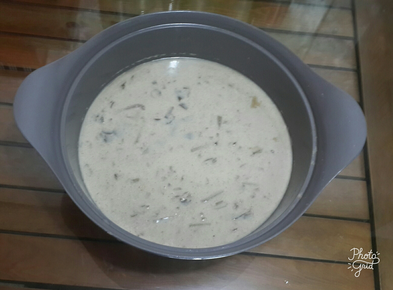 육수가 완성될 무렵, 이미 불려놓았던 찹쌀을 믹서에 넣고 갈기 시작하였다. 멥쌀 대신 찹쌀을 사용하면 훨씬 차지고 맛있는 죽이 되기 때문에 나는 주로 찹쌀을 사용한다. 찹쌀이 부드럽게 갈린 것을 확인한 후 커다란 냄비에 들깨가루와 이미 갈아 놓은 찹쌀물을 넣었다. 들깨가루가 많이 들어갈수록 맛은 고소하고 들깨 향도 진하다. 무게를 기준으로 들깨가루는 찹쌀의 절반 이상은 되어야 된다.