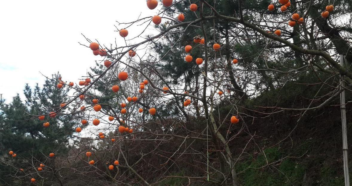 고개 넘어 인적이 뜸한 산비탈에는 감들이 빨갛게 익어 있습니다. 예전 같으면 이미 땄어야 할 감들이 아직 남아있는 걸 보니 수확을 포기한 모양입니다. 여기에도 요즈음은 철저한 경제논리가 적용되어, 감나무 주인은 감을 따서 시장에 내다 판들 인건비조차 건지기 힘든 마당에 차라리 포기하는 것이 낫다고 계산했겠지요. 가난하고 배고팠던 시절, 돈 사기 위해 농부는 먹고 싶은 욕구를 참아가며 감을 수확하면서도 까치밥 정도는 남겨두었던 그 시절의 인정과 여유가 그리워집니다.