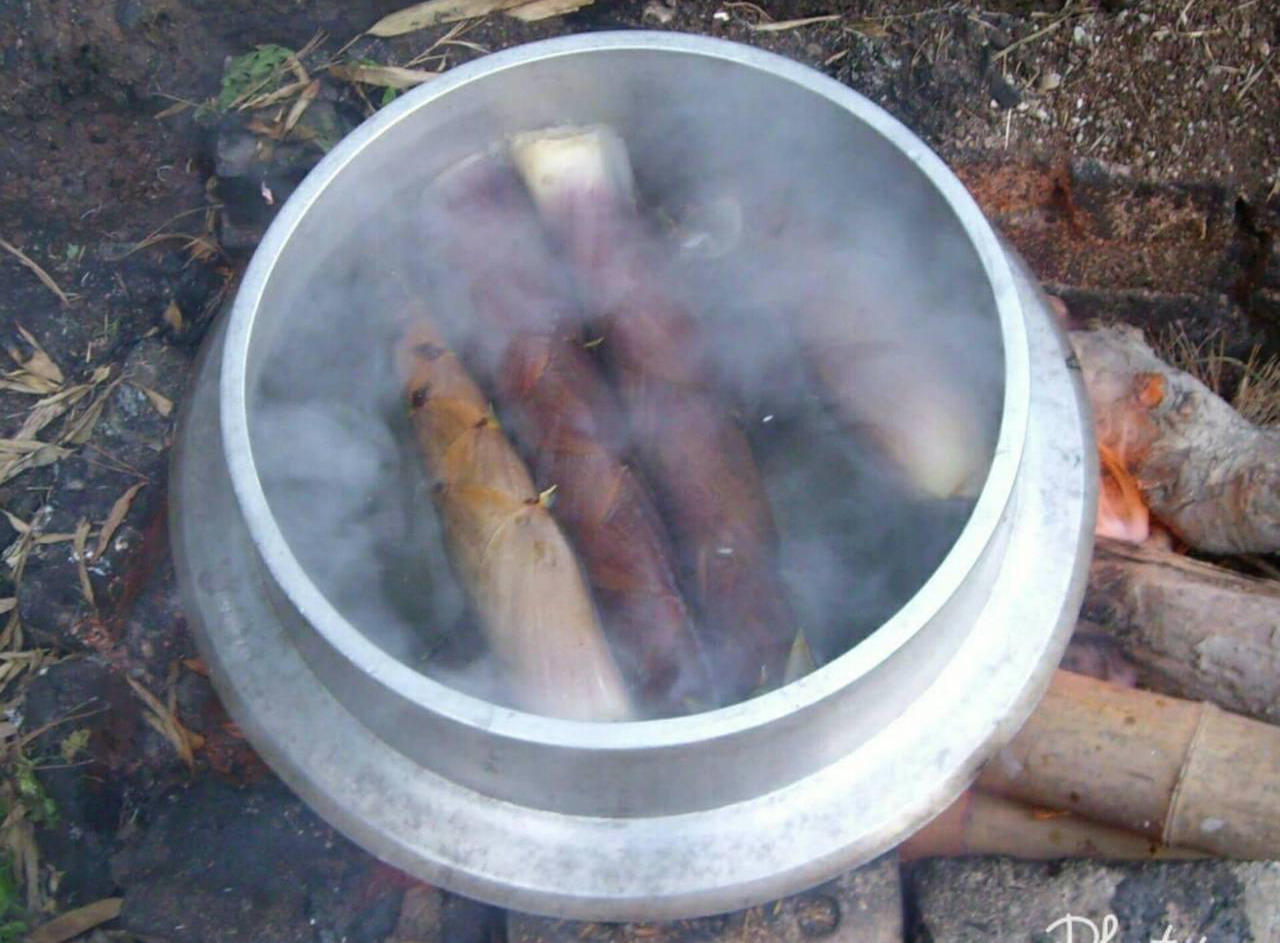 고생하여 ‘제거’한 죽순을 버리기는 아까워 죽순으로 추억의 음식을 만들기로 하였다. 앞마당에 백솥을 걸고 죽순을 껍질째 넣고 물을 한 솥 가득히 부었다. 죽순 특유의 아린 맛을 줄이기 위해서는 죽순을 삶을 때 껍질을 벗기지 않고 삶아야 한다. 삶은 죽순을 한나절 정도 찬물에 담가 놓으면 아린 맛은 대부분 제거된다.