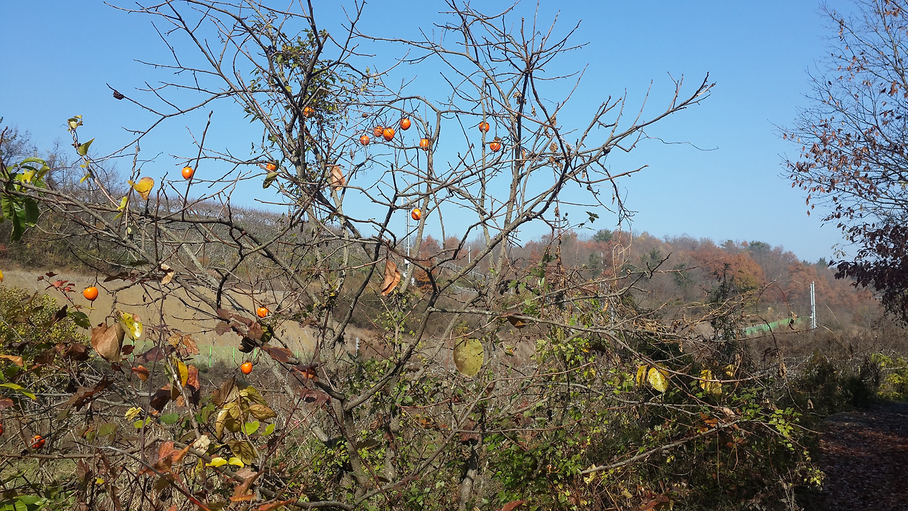 벌써 따스한 햇볕이 그리워지는 계절이다. 건너편 양지바른 산등성이에 서 있는 활엽수들은 잎을 모두 떨어뜨리고 가지만 남았다. 앙상한 나뭇가지 사이로 빨간 열매가 보인다. 그건 수확 철을 한참 넘긴 감이었다. 어떤 감나무는 산기슭에서 야생으로, 또 다른 나무는 주인 잃은 폐가 옆에서 농익은 감을 여태껏 달고 있다. 까치 한 마리가 감나무 꼭대기에 앉아 홍시가 된 감으로 늦은 점심을 들고 있다.