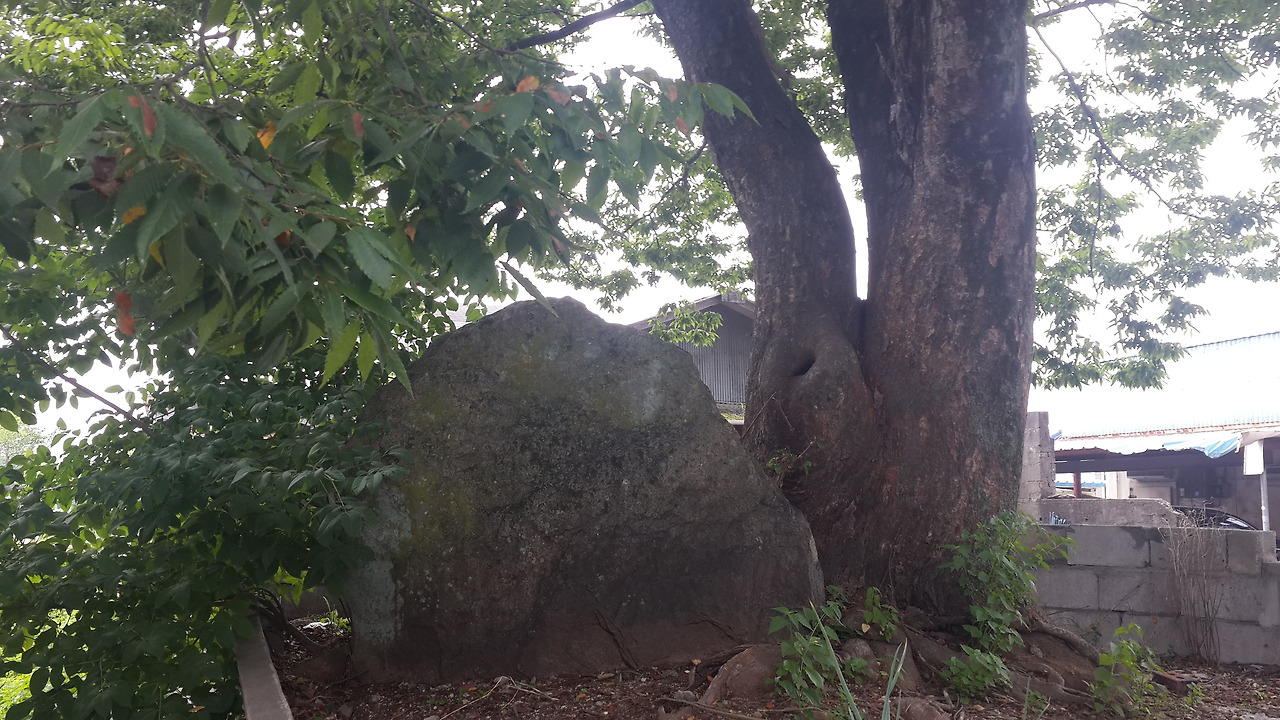 나무 옆에는 둥그렇게 생긴 커다란 돌이 예전 모습 그대로 떡 버티고 서 있다. 이 돌 역시 우리 조상들이 마을이나 집안의 평안을 기원하기 위해 세운 이른바 선돌(立石, menhir)이다.