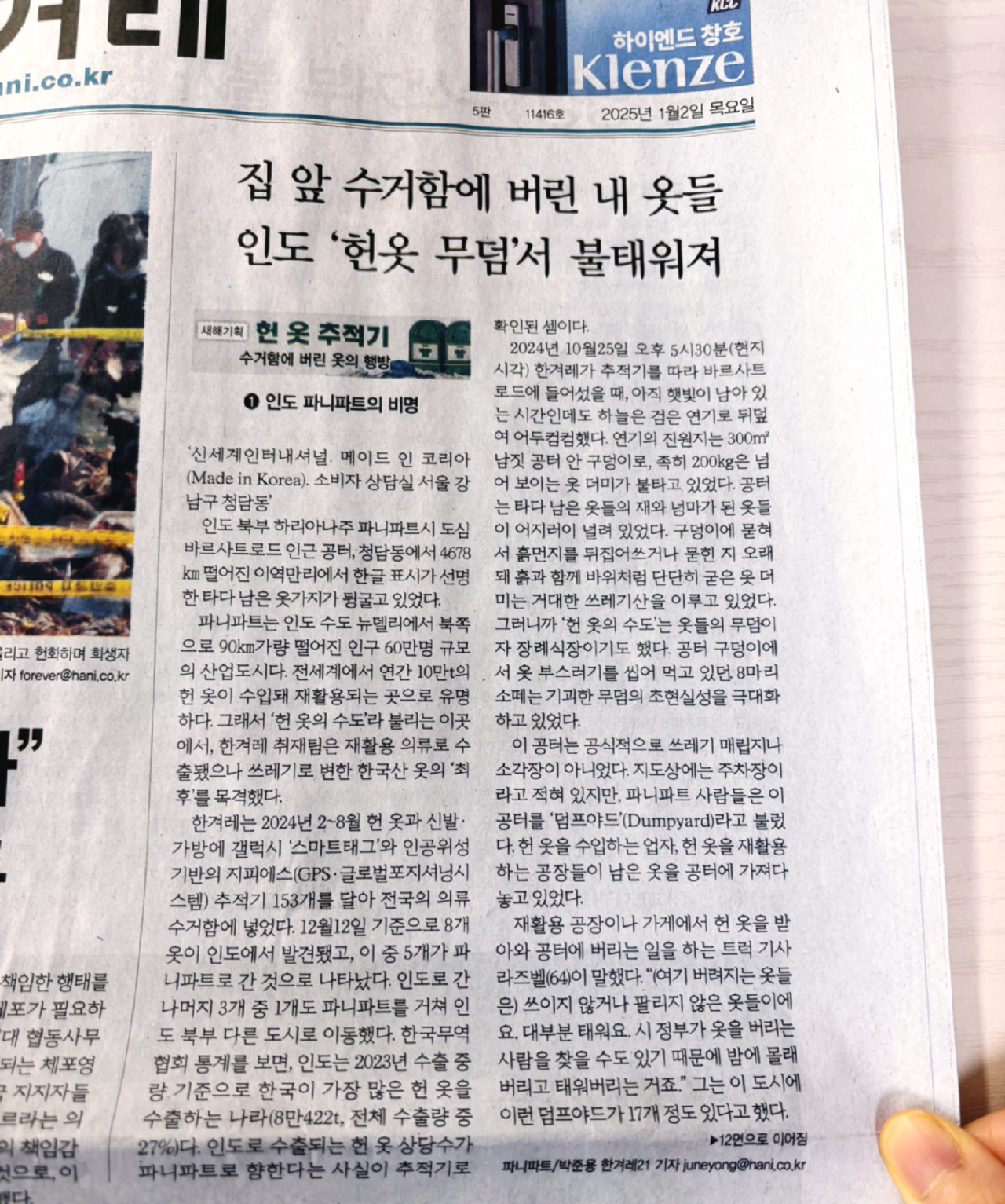 지난 1월 2일 자 신문 기사를 보고