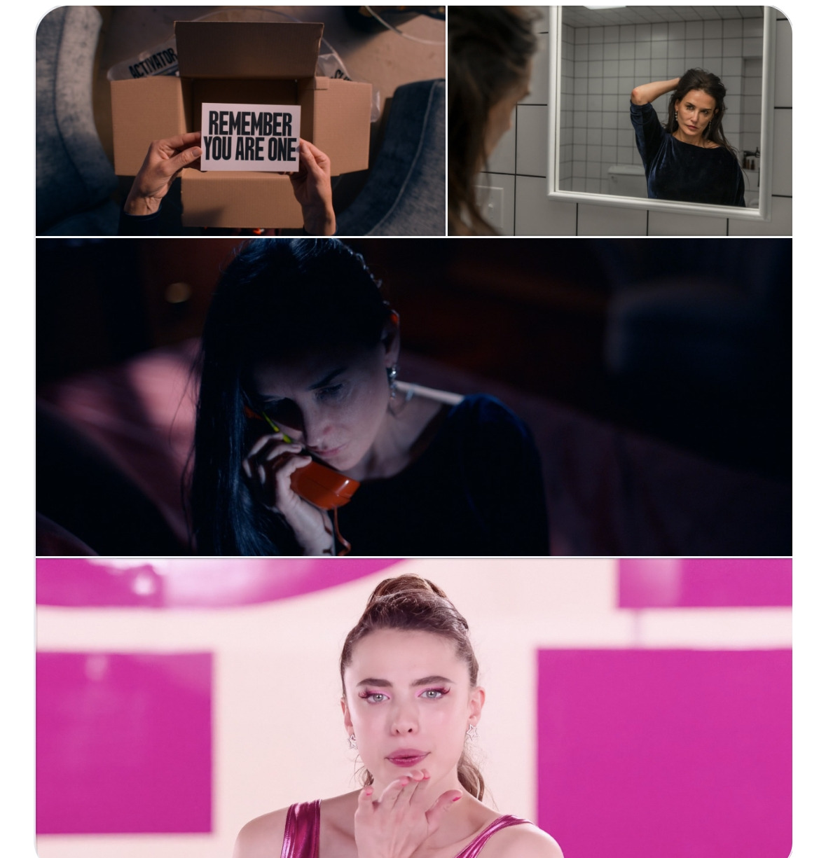 9. 분명 젊은 여자와 데미 무어의 자아는 다른 듯 나옵니다.