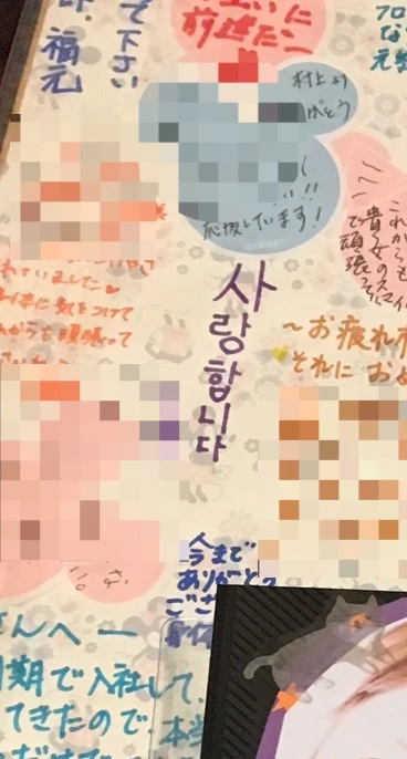 선물로 받은 롤링 페이퍼에는 료칸 직원들의 마음이 담긴 글자가 한가득이다. 다들 새로운 도전을 축하하고 응원해 주고 있다.