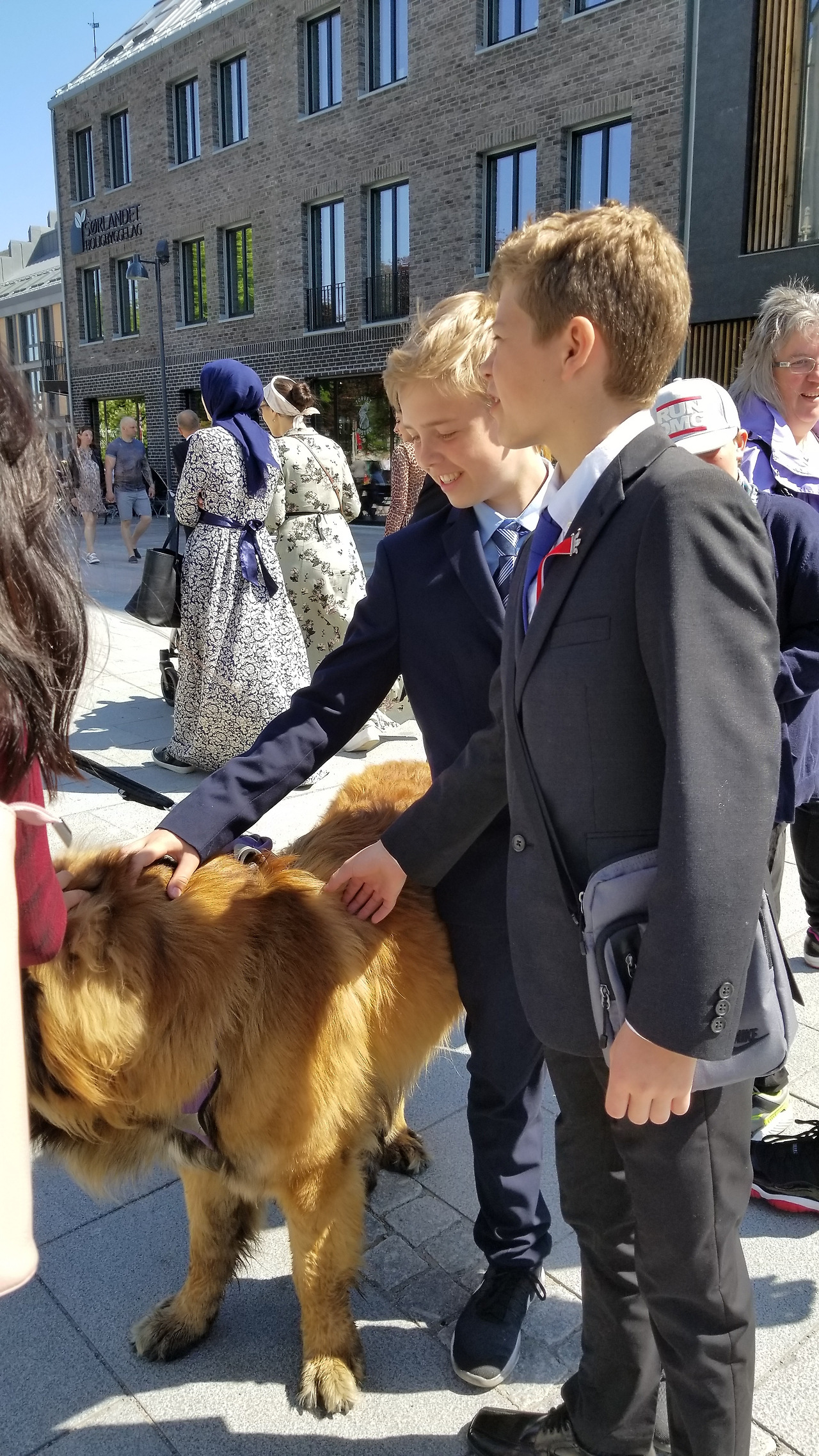 사람들은 물론이고 강아지들도 노르웨이 국기로 치장하고, 자동차도 국기로 장식을 할 정도로 애국심이 동네에 가득했다.