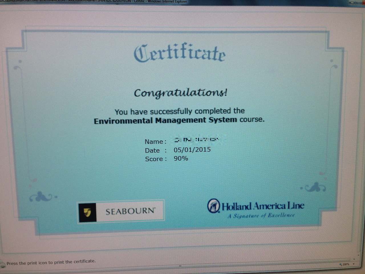 온라인 트레이닝이 무지하게 많다. 수료증만 10개 정도 받았다. 처음으로 크루즈에서 일하는 나는, 틈만 나면 "컴퓨터실"에 가서 15년은 더 되어 보이는 구식 컴퓨터로 온라인 교육방송을 보고 시험을 봤다. 원칙대로라면 모든 과정을 pass 하기 전까진 일을 못한다는데 ㅋㅋㅋ 웃기고 있네.. 배 타고 짐도 풀기 전에 연주시켰잖아요 ^^......