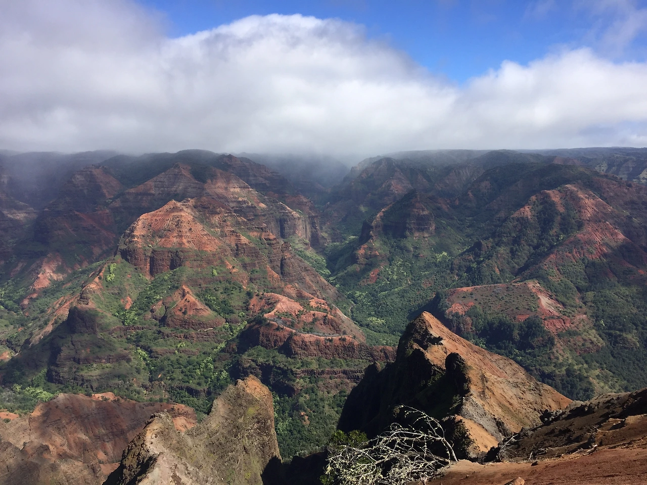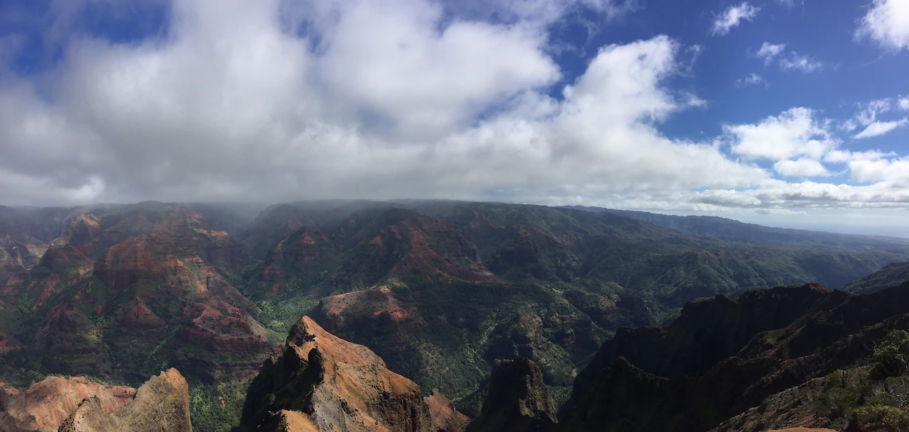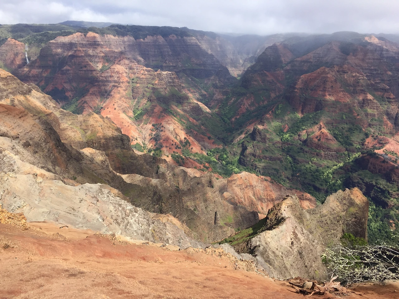 그랜드 캐년에 초록색을 입혀놓은 듯한 Waimea Canyon. 규모가 어마어마하다. 바람도 많이 불었다.