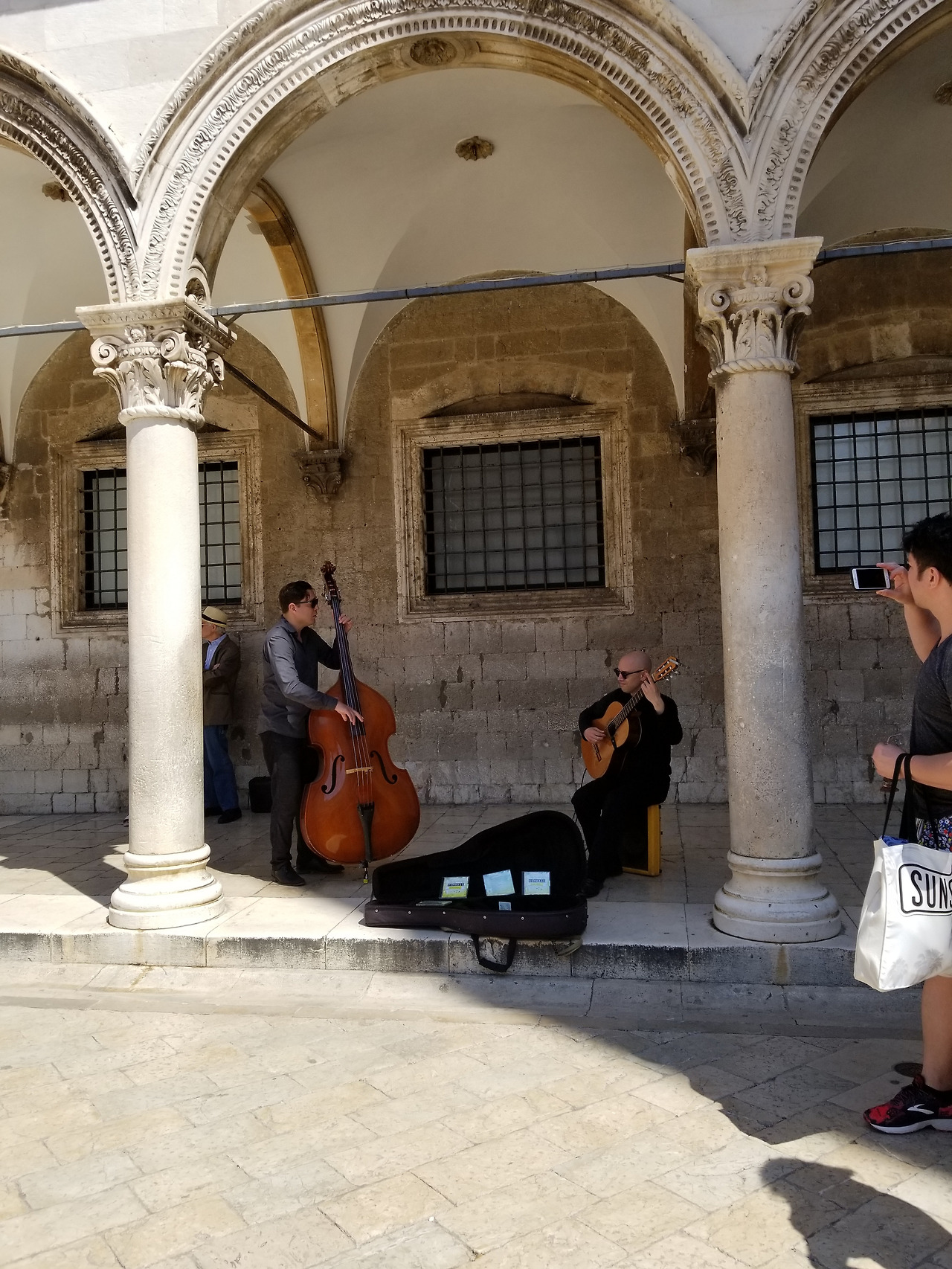광장 한편엔 듀오 버스킹하는 듀오가 있었다.