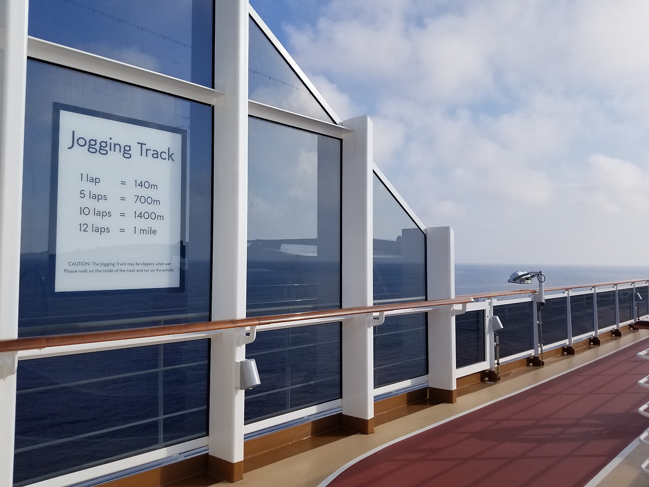 크루즈 꼭대기층에는 조깅 트랙이 있다.