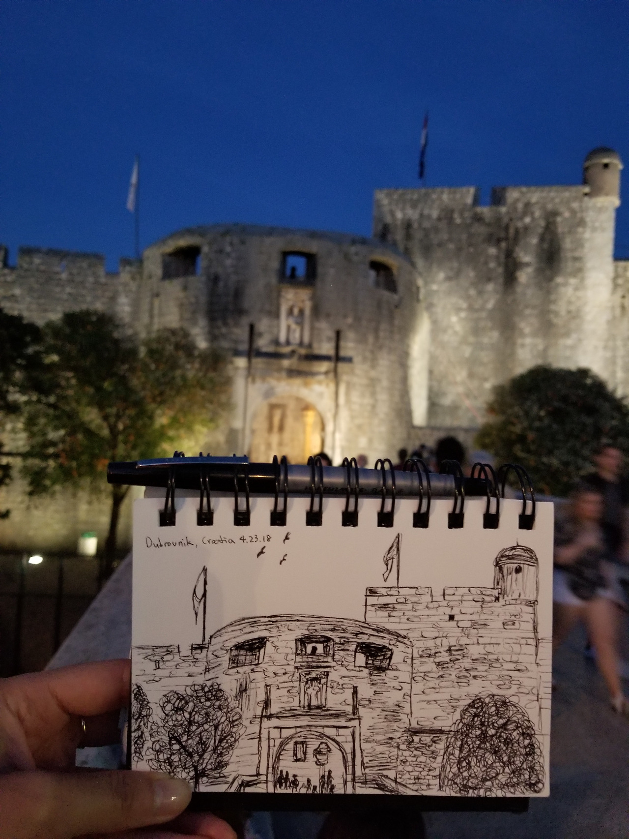 광장을 그리자니 그리고 싶을 만한 특색은 없다고 느껴졌고, 아무래도 처음에 이 도시에 왔을 때 마주한 웅장한 성벽이 기억에 남아 성문 앞에 서서 스케치를 시작했다.