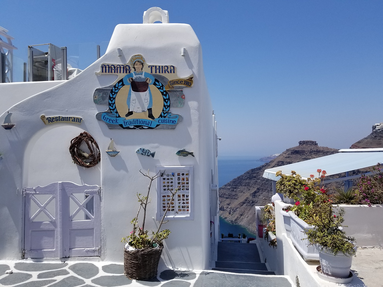 (영어 스펠링은 Thira이지만 그리스 발음은 ‘피라’가 맞다)