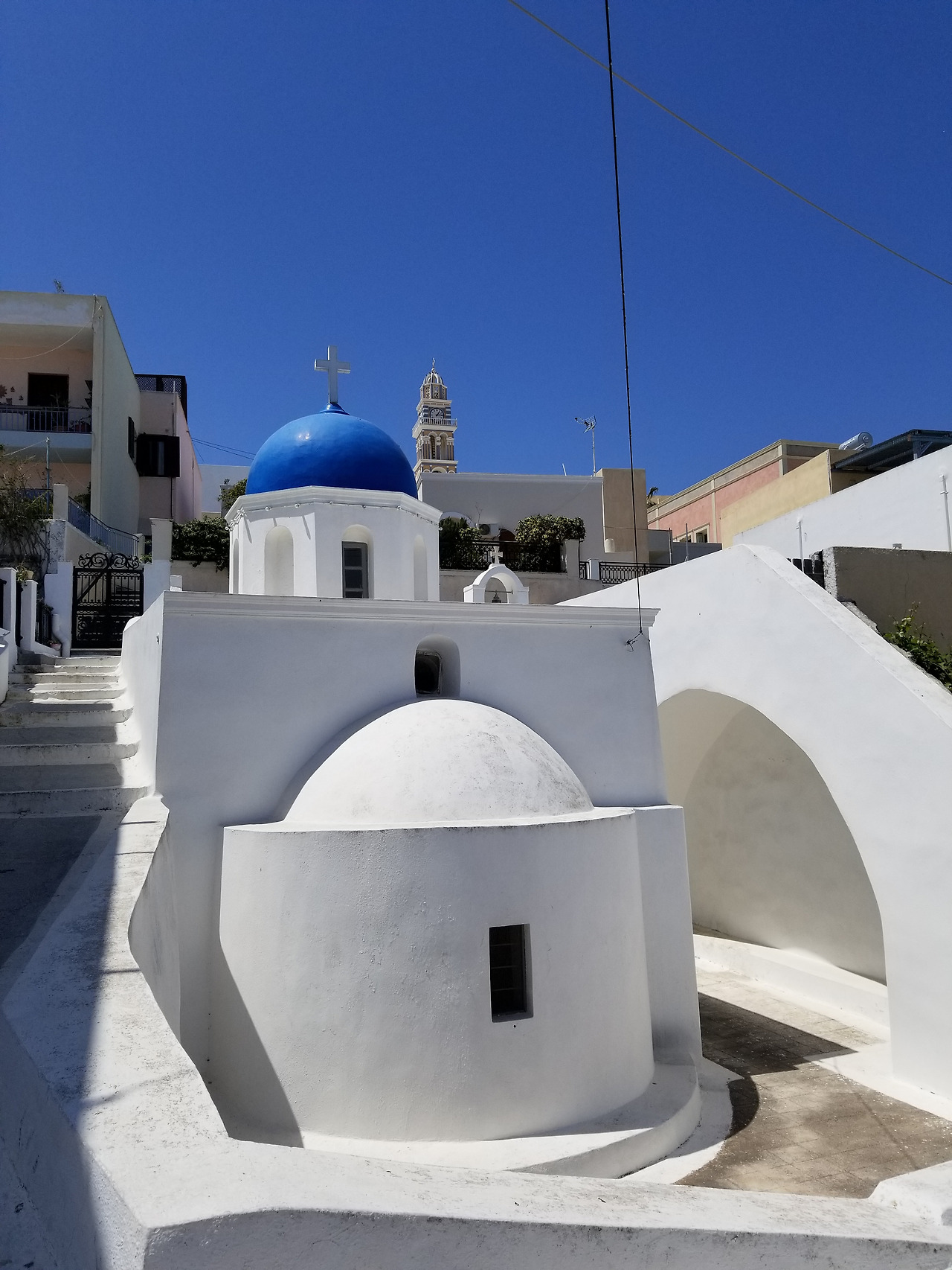 2. 그리스 정교에서 파란색은 하늘과 바다, 신의 보호를 상징한다고 한다. 그리고 악귀를 쫓는다는 믿음도 있어서 문과 지붕을 파란색으로 칠한다.