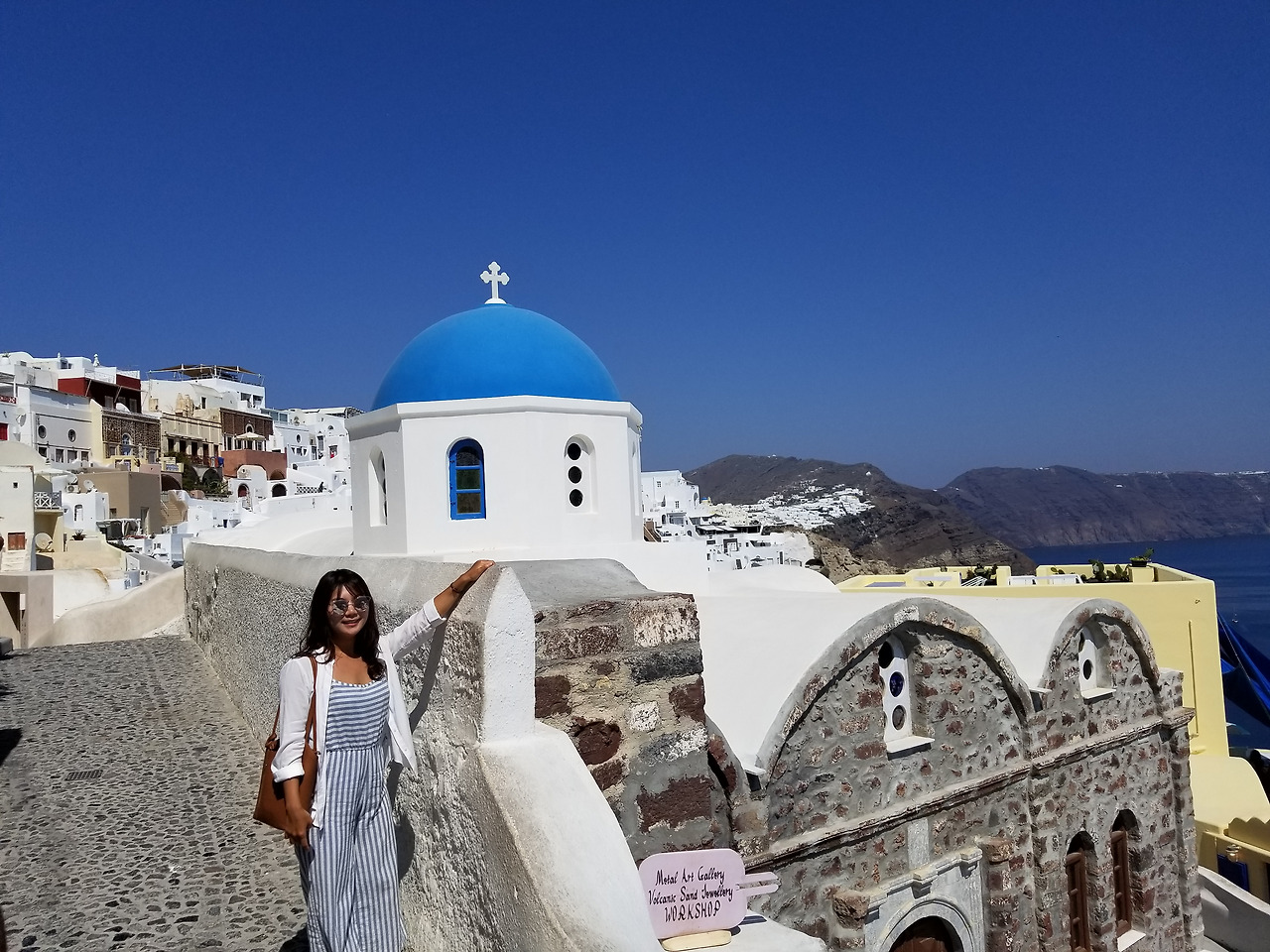 산토리니에 온 만큼 화이트+블루 컨셉으로 입고 돌아다닌 나.