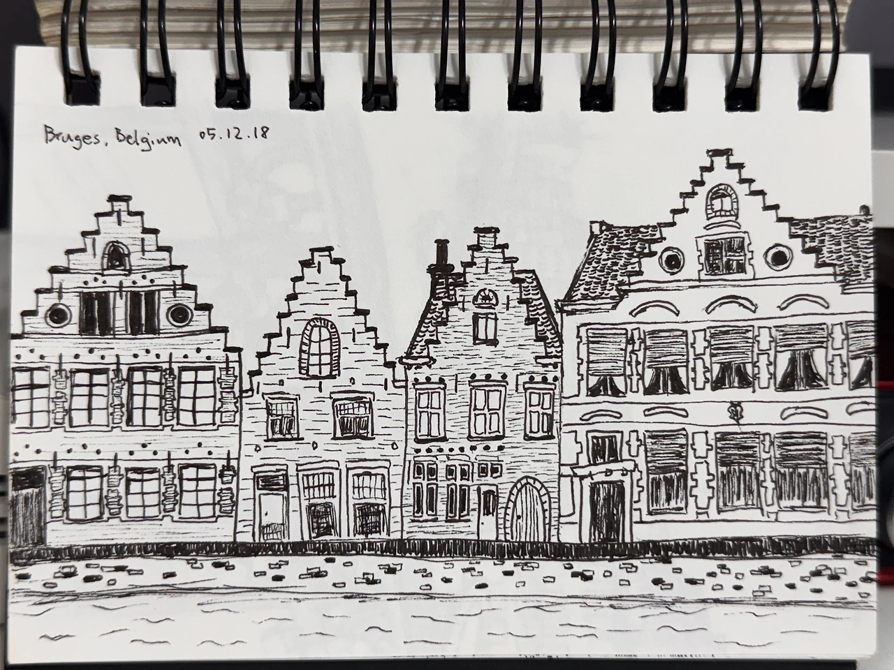 대신, 크루즈로 돌아와서 사진을 보고 벨기에의 예쁜 건물들을 스케치로 남겼다.
