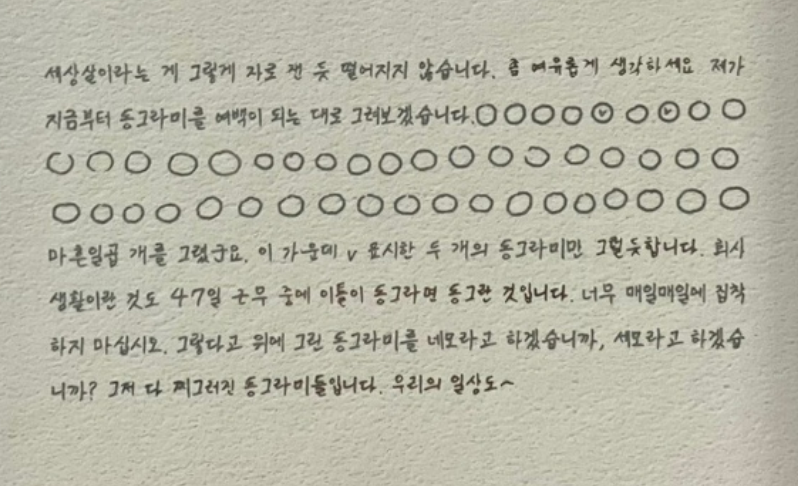 '동그라미'에 시선을 맞추면 찌그러져도 적당한 동그라미로 편히 살 것 같았고,