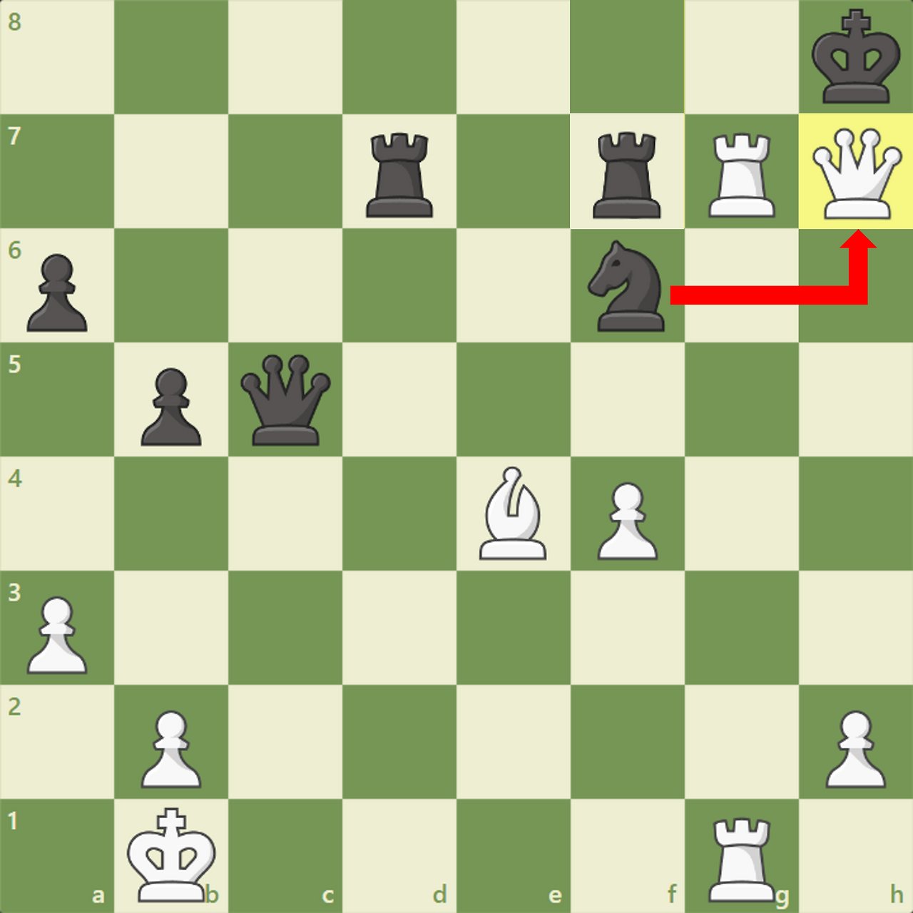 체스의 전술 중 하나는 역할이 과부하된 기물을 공략하는 전술이 있습니다. 이를 체스 용어로 디플랙션(deflection) 전술이라고 합니다.