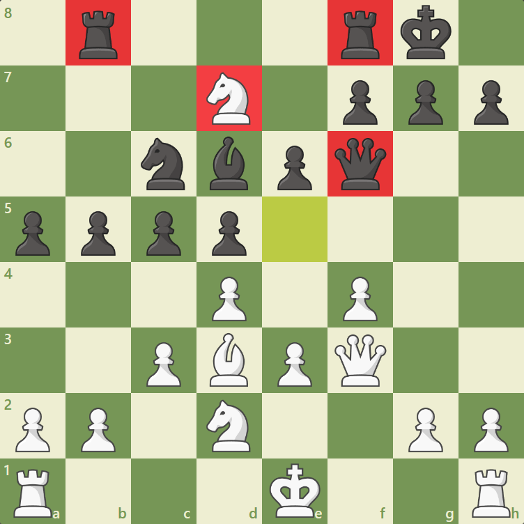 왜냐하면 나이트는 직선이 아닌 점의 형태로 공격하며 다른 기물을 뛰어넘기에 둘 이상의 기물을 공격하기 최적화되어 있기 때문입니다.