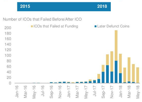 18년 10월 31일 발표한 Morgan Stanley 보고서는 ‘ICO들은 크게 실패하는 중이고, 실패는 빠르다. (ICO’s are largely failing, and failing fast)’라고 말하며 ICO 위험성을 경고했습니다. 이 보고서에 따르면 17년 진행한 약 64% ICO들이 잠재적으로 실패했으며 이것은 1년 이내 스타트업 실패율인 25% 보다 월등히 높습니다.