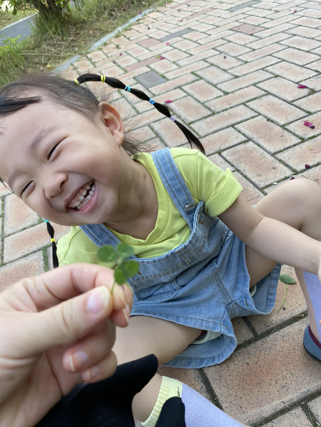 가만히 아이는 손에 쥐어준 네잎크로버를 바라보더니 냅다 뛰기 시작한다. 어… 어디가!!! 멀찍이 뛰어가 행운의 네잎크로버를 휙 던져 버렸다. 순식간이었다. 아.. 세상에. 내가 힘들여 찾은 것을… 아이는 아랑곳하지않고 세상에서 제일 귀여운 악당처럼 깔깔 웃었다.