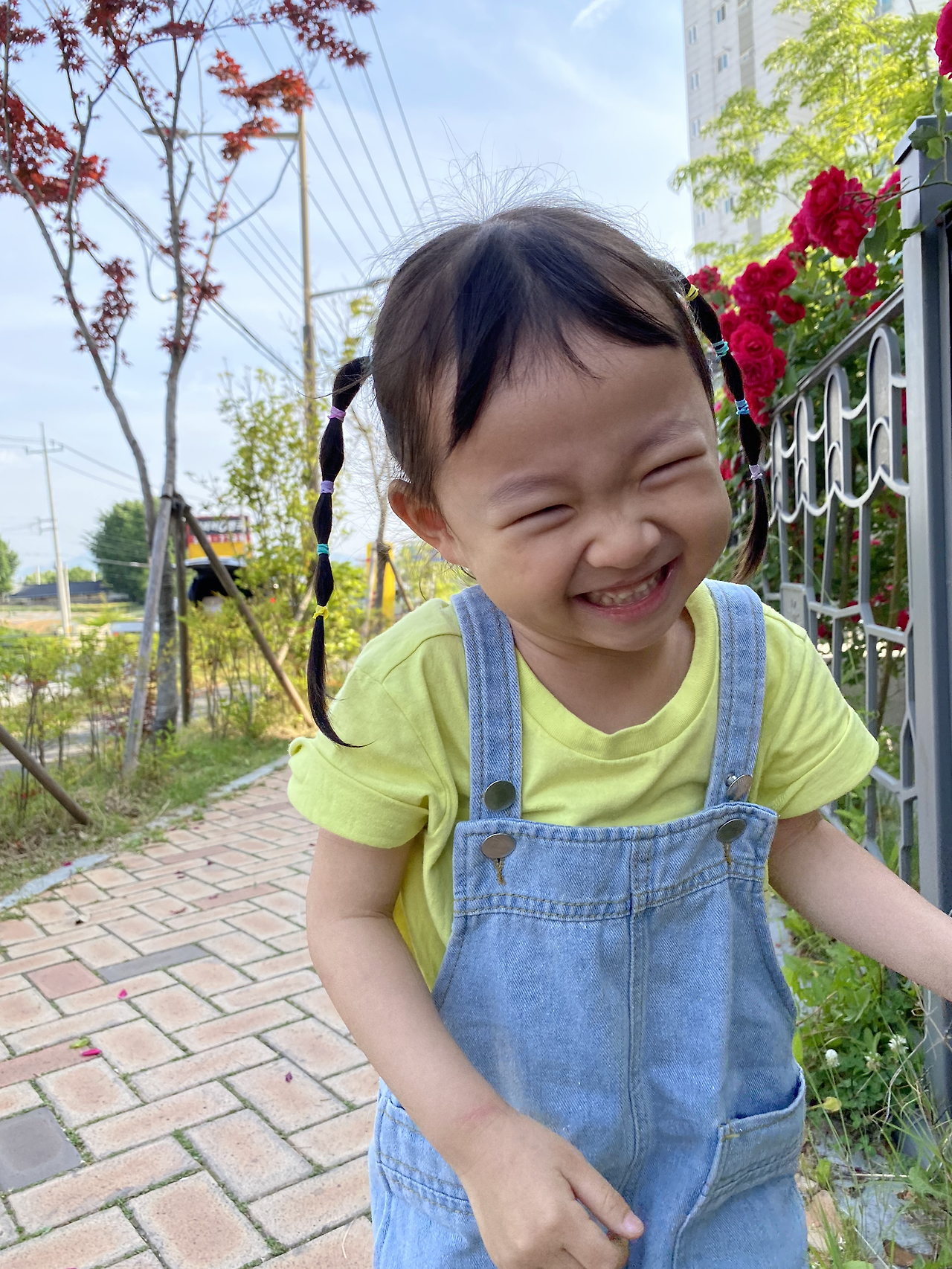 요즘엔 장미꽃이 한창 피어서 종종 길을 돌아 들르는 곳이 있다. 장미가 잔뜩 핀 남의 집 담벼락이 보이기 시작하면 온 몸으로 행복함을 표현하며 소리를 지른다. “이야! 여기다! 장미꽃이다!”