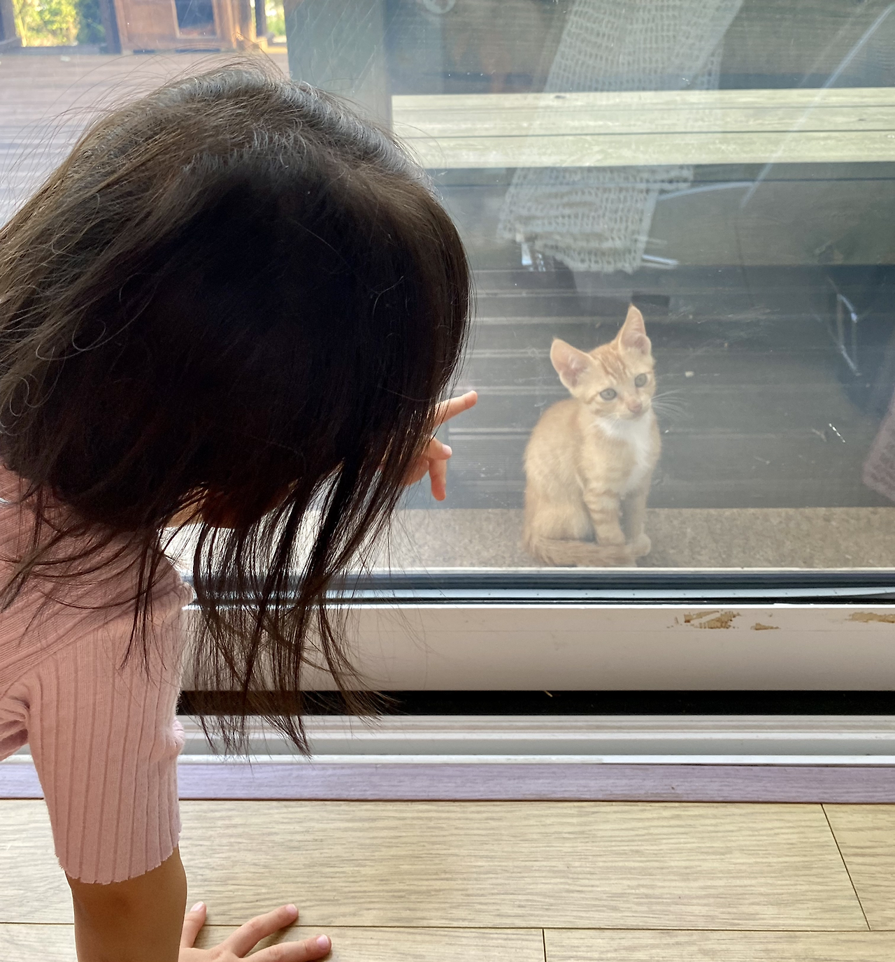 그러니까 고등어와 치즈의 연애 코스에 우리 집이 들어간 셈이었다. 애교 많은 치즈는 인간이 쓰다듬는 것은 절대 허락하지 않았지만 유리창을 사이에 두고는 온갖 귀여운 짓을 다 했다. 아기와 까꿍놀이도 하고 배를 까고 뒹굴거리기도 했다. 집 안에서 태극권을 하던 엄마를 구경하러 창 안으로 얼굴을 빼꼼 내밀기도 했다. 그러다 고등어 올 시간이 되면 난간에 올라가 있다가 덩치 큰 고등어를 부비부비 핥고 매달리고 장난을 쳤다. 무덤덤한 고등어는 싫지 않은지 가만히 있다가 치즈가 선을 넘으면 하악! 했다. 그래도 치즈는 뭐가 좋은지 쪼르르 따라다닌다.