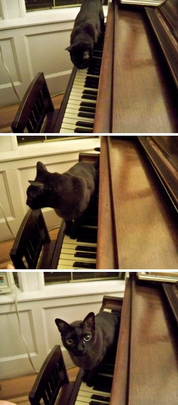 그때, 나에게 생채기를 내고 미안한 듯 올리버 녀석이 피아노 위에 올라가 근사한 노래 한 곡을 연주한다. 온갖 나쁜 상상에 낯빛이 어두워졌던 나, 올리버가 상처를 낸 게 미안한 리오. 우리 둘은 올리버 녀석의 재롱에 그만 빵 터지고 말았다. 올리버, 한두 번 한 솜씨가 아니야.