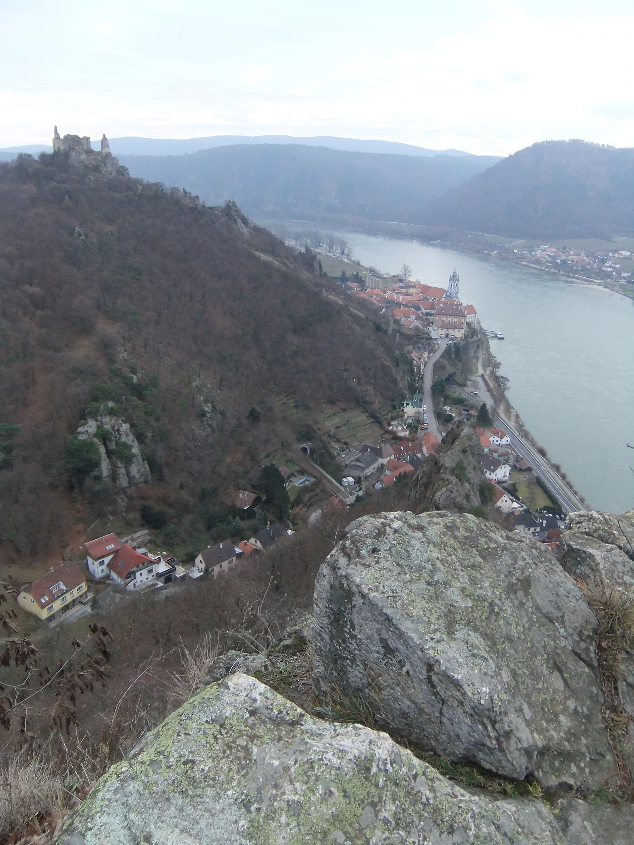 멀찍이 앞서 가던 조가 헥헥거리며 따르는 우리에게 말했다. 그래, 다 왔다 이거지? 길의 마지막 표지석을 돌아서자마자 이게 웬걸! 하늘이 확 펼쳐졌다. 시원한 강바람이 숨으로 들어온다. 겨울 냄새가 난다. 우리 발 밑으론 아무것도 없었다. 절벽이었다. 탁 트인 절벽 아래 흐르는 도나우 강을 따라 우리가 머무는크램스가 보였다. 구부러진 강 사이로 마을이 옹기종기 모여 있다. 이제는 형체만 남은 뒤른스테인 성이 보인다.