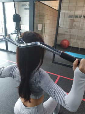 6. 렛 풀다운 비하인드 넥 그립 (Lat pull down with behind neck grip)