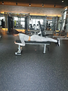 허리의 거동이 불편한 환자의 경우 이 동작 자체가 안 될 수도 있다. 그럴 경우, 가동범위를 최소화해서 올릴 수 있는 만큼만 올리면 된다. 위에서 1초~2초가량 멈췄다가 천천히 내려온다. 10회 3세트를 시작으로 조금씩 개수와 세트수를 늘리면 도움이 될 것이다. 긴 평면 벤치가 있으면 쉽게 수행할 수 있다.
