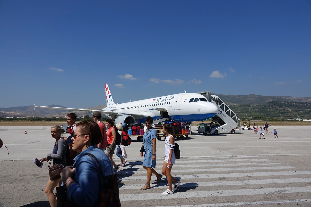 스플리트 공항은 자그레브 공항보다 더 작은 규모로 비행기에서 내려 공항 관계자를 따라 걸어서 출구로 나가게 된다.