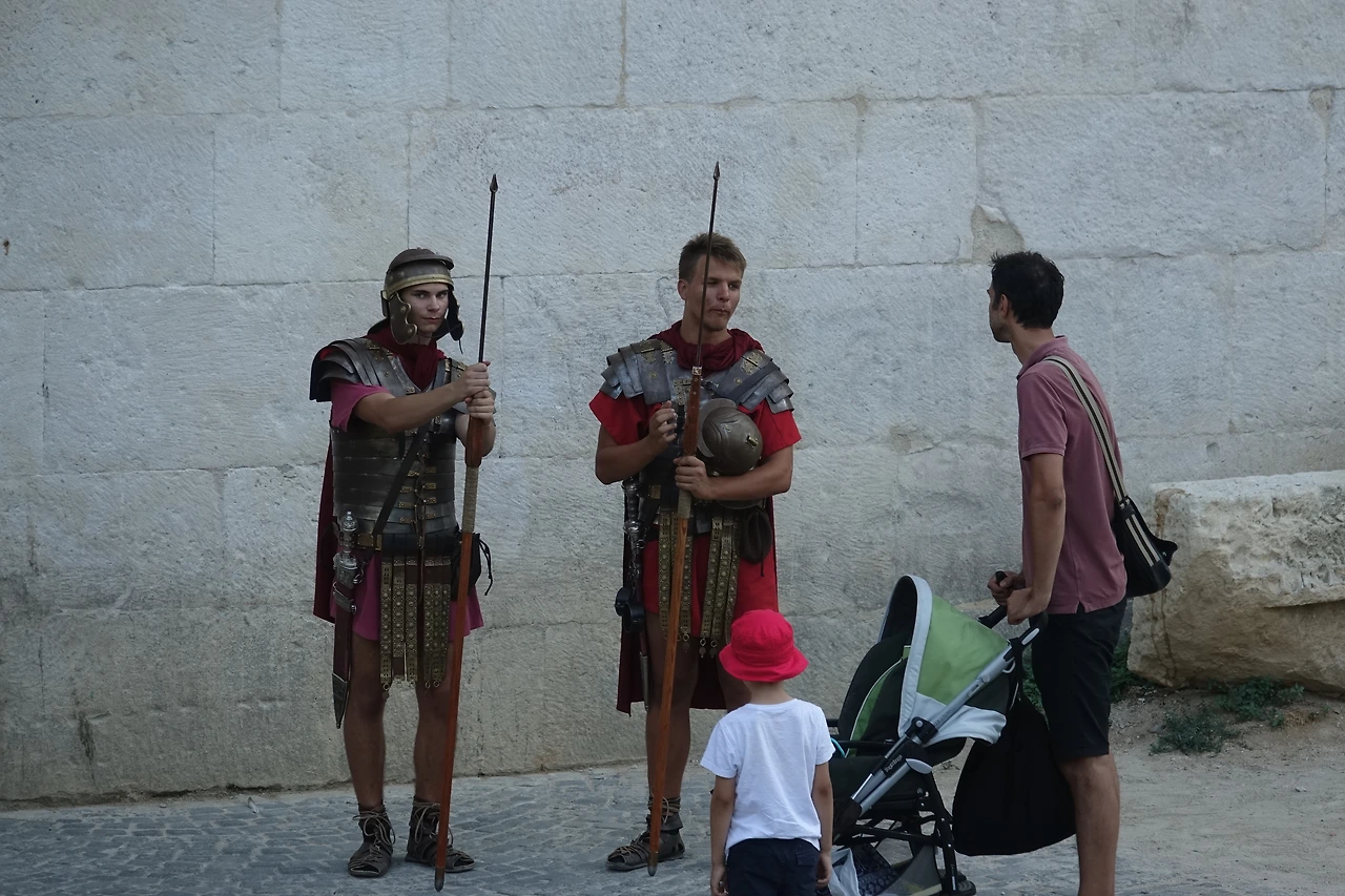 로마시대 병사의 모습을 한 건장한 사내들이 보인다. 이 녀석들도 혹시 로마 콜로세움 앞에 있는 병사들처럼 친하게 사진 찍어주는 척하다가 찍고 나면 돈 달라고 하는 건 아닐지...