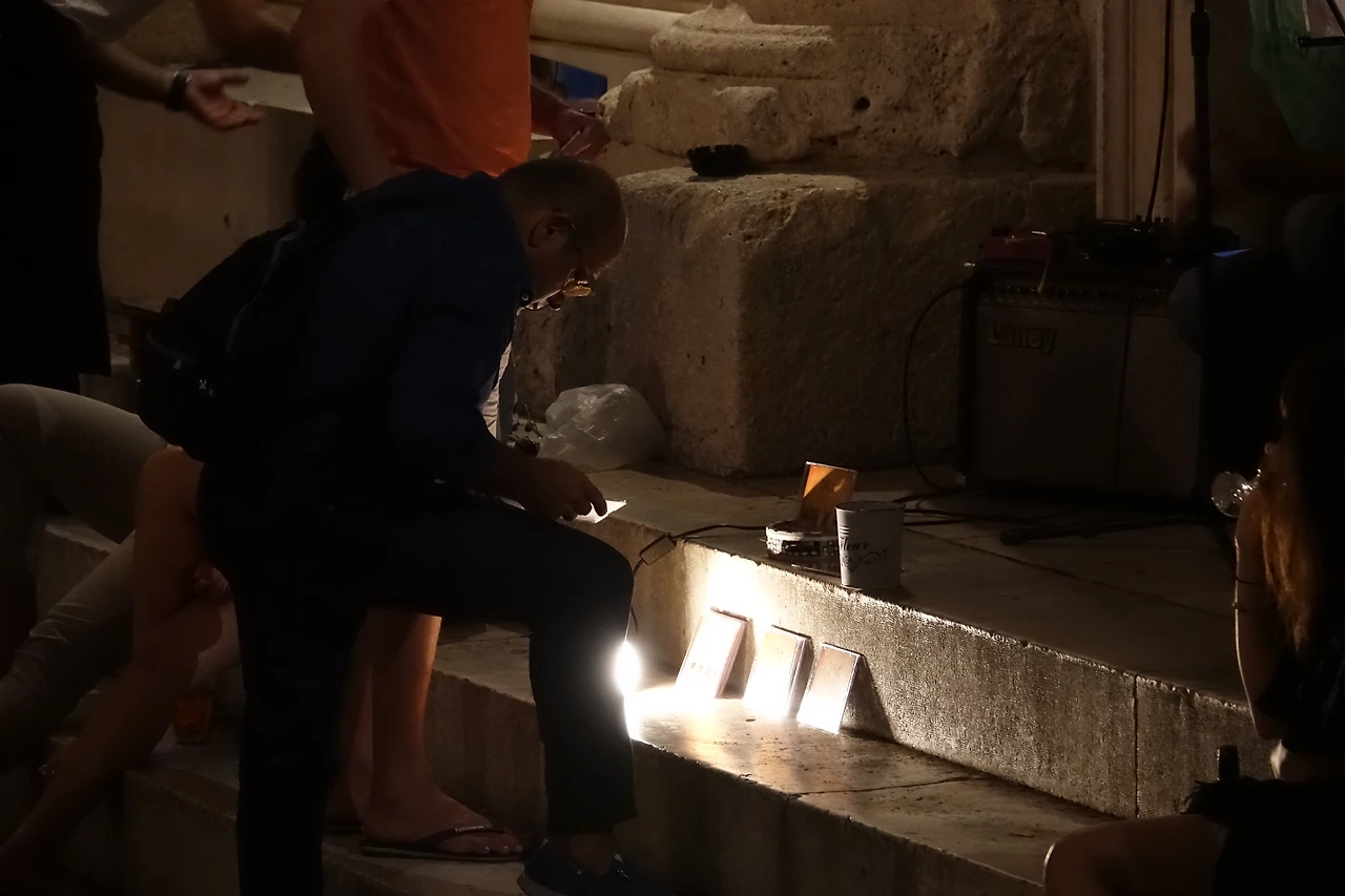 밤 12시가 넘었음에도 사람들로 북적이는 곳이 있었다. 바로 '열주 광장(Peristill)'. 삼삼오오 짝을 지어 앉아서 캔맥주를 나눠 마시는 사람들부터 진지하게 토론을 하는 젊은이들까지. 여행객들의 열정은 밤늦은 시간에도 지칠 줄 몰랐다.