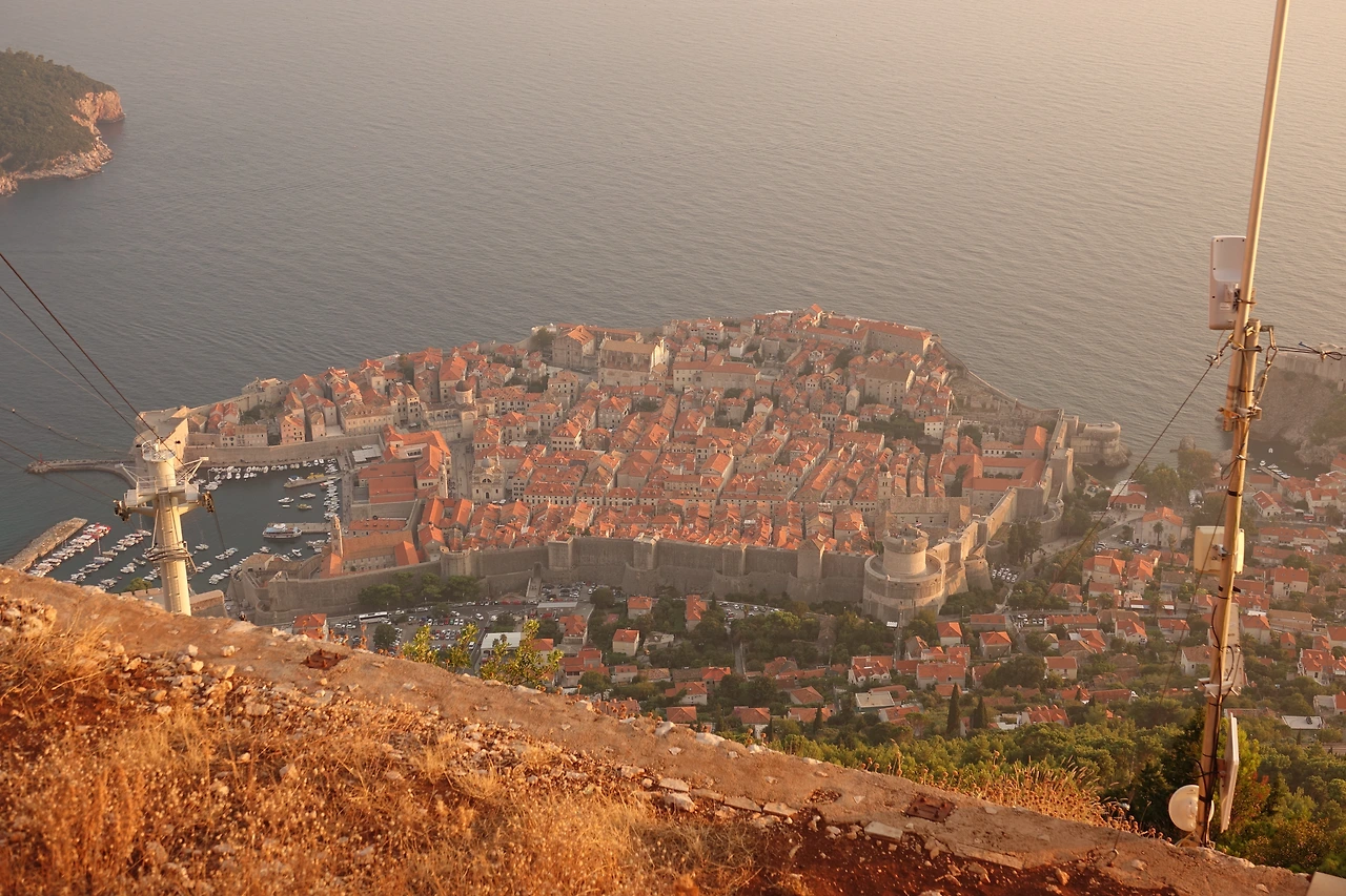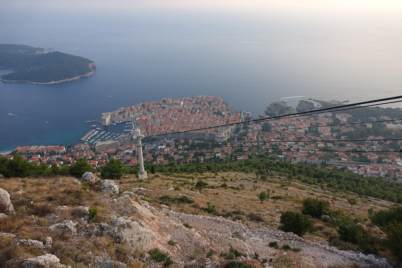 저녁 6시경에 케이블카를 타고 스르지 산에 올랐다. 이곳이 두브로브니크에서 가장 높은 곳이라 구시가를 비롯해 두브로브니크 전 지역을 한눈에 볼 수 있는 곳인 셈이다. 케이블카는 2대가 쉴 새 없이 올라갔다 내려갔다를 반복하기에 많은 관광객이 몰려도 대기 시간이 그리 오래 걸리지 않는다. 낮과 밤이 교차하는 이때 즈음이 스르지 산을 오르기 가장 적당할 때가 아닐까 싶다. (두 번 올라오기에는 케이블카 요금이 너무 비싸니 주간과 야간의 모습을 담는 2마리 토끼를 잡을 수 있는 딱 적당한 시간대)