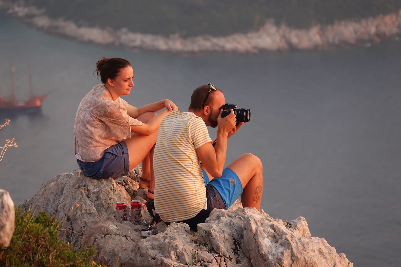 절벽에 앉아 절경을 감상하는 어느 커플.