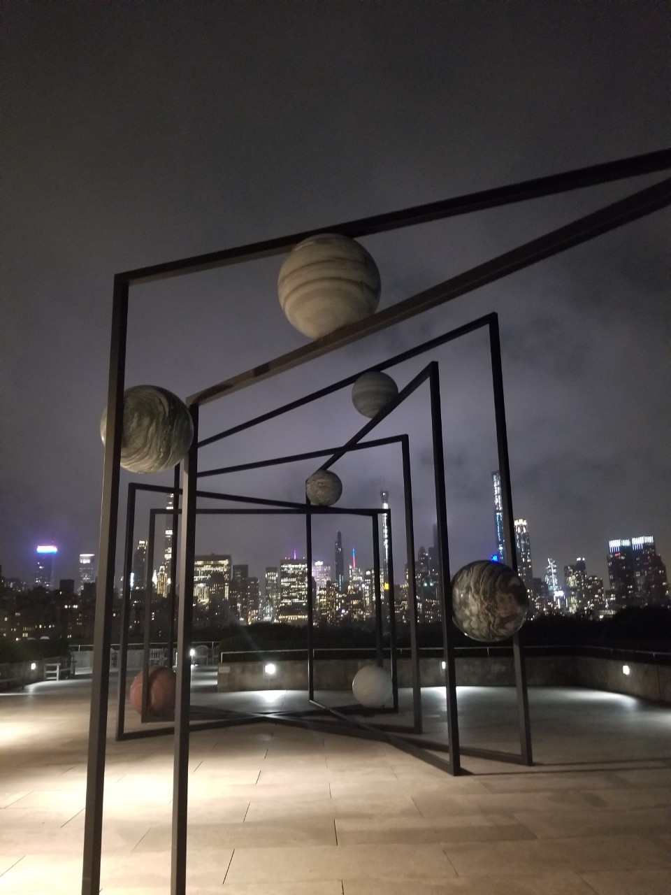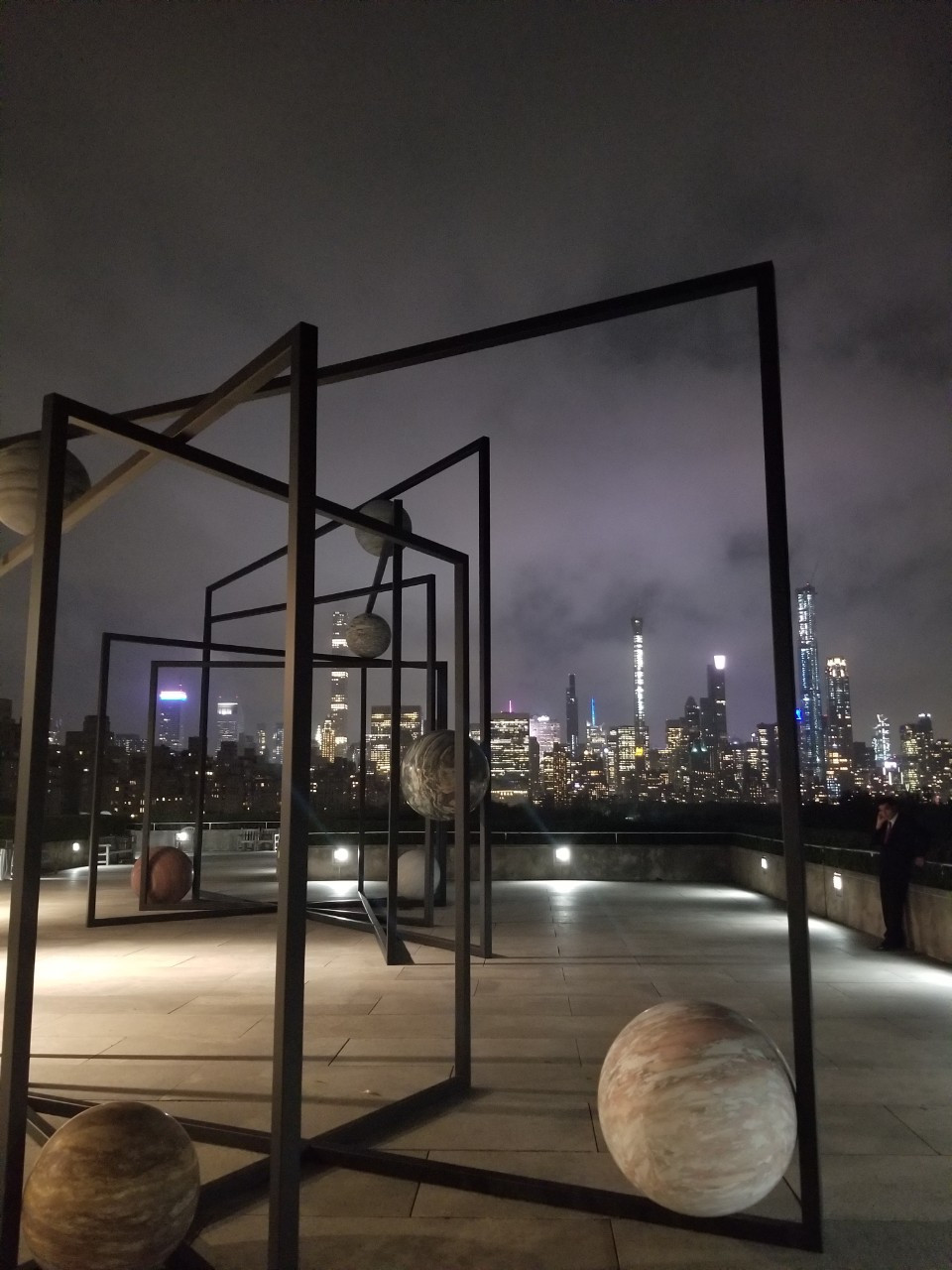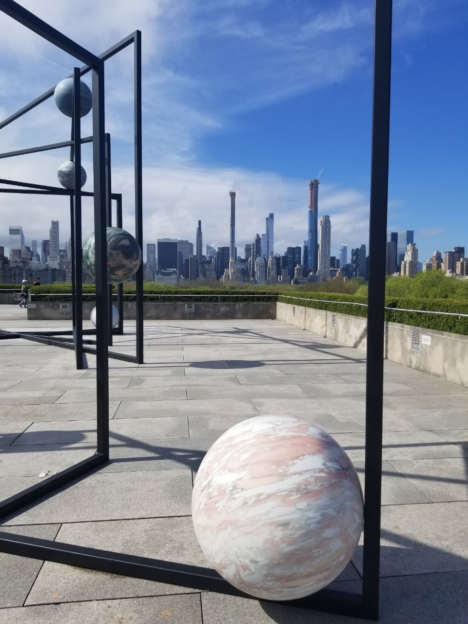 올해의 경우 Alicja Kwade라는 폴란드&독일계 작가의 Parapivot 이라는 전시이며, Roof Garden을 지구로 가정한 Solar System (태양계)을 모티브로 한 작품이다. 따라서 우리가 바라보는 작품과 뉴욕, 그리고 센트럴파크는 우주를 연상케 하는 컨셉의 전시이다. 벌써부터 상당한 인기를 끌고 있으며, 유럽 관광객이 매우 많은 편이다.