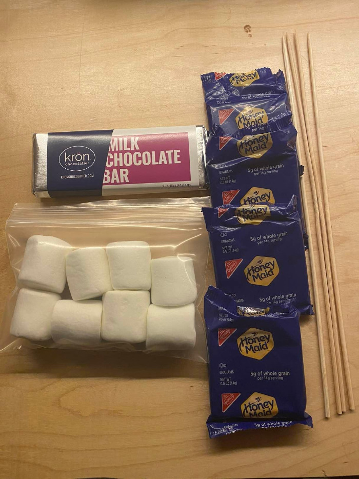 캠프파이어를 하면서 전통적으로 즐겨먹은 디저트인데, 그라함 비스킷 사이에 초콜릿을 넣고 꼬치에 끼운 마시멜로를 캠프파이어 불에 구워 녹인 후 같이 올려 먹는 특별한 간식이다. 1920년대 걸스카웃 캠핑에서 시초를 보고 있는 북미권 국민 간식이다. 어린아이들이 매우 좋아하며, 더 달라는 의미의 Some more가 변형되어 S'more가 된 것이다. 맛이 워낙 뛰어나 이 맛의 이름을 딴 아이스크림 등 파생 상품이 매우 많다.