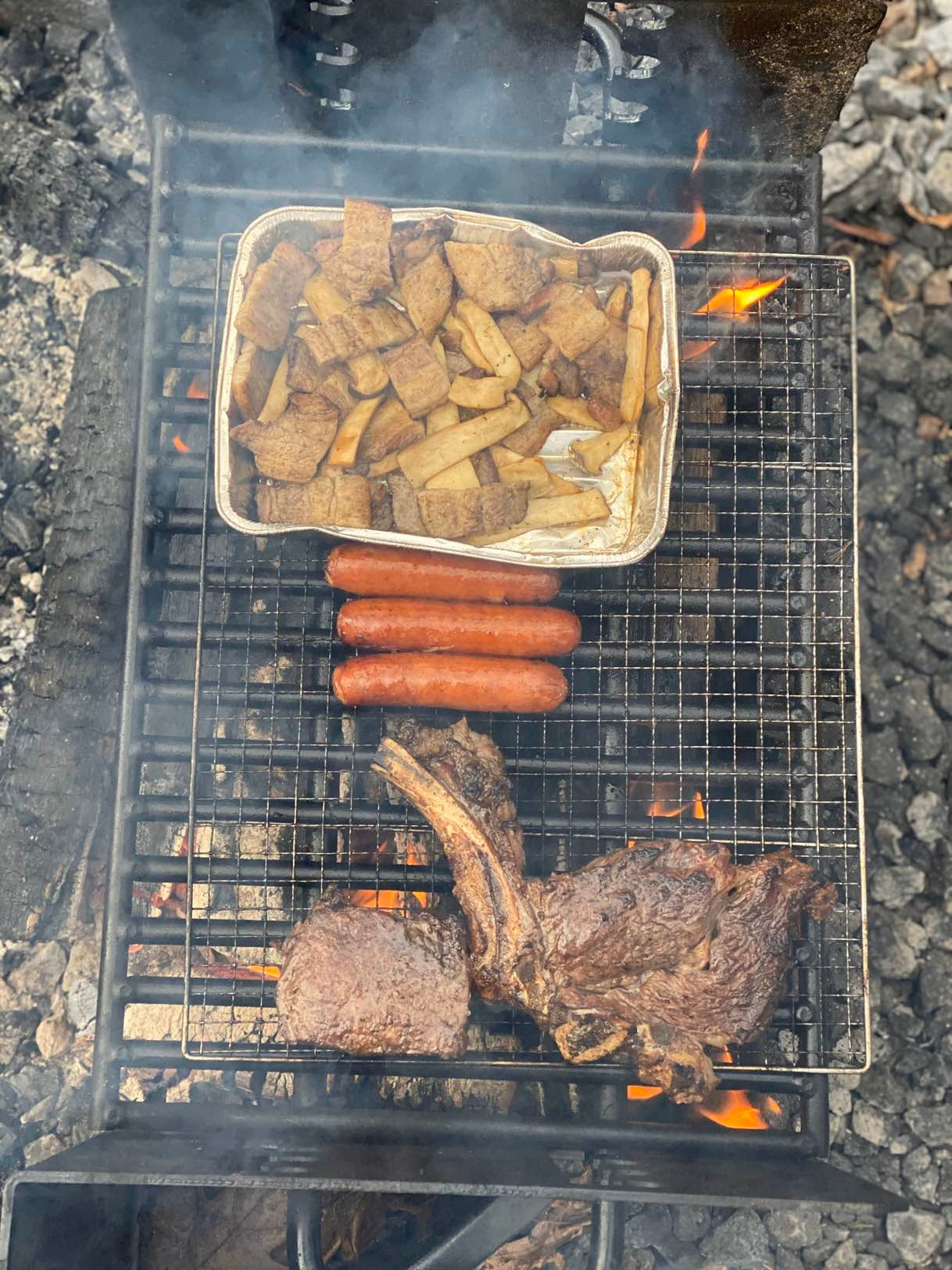 숙소로 돌아온 우리는 추웠던 몸을 녹이려 라면을 끓여 먹었는데, 역시 우리는 한국인이라는 것을 라면을 통해 공감하고 느낄 수 있었다. 그렇지만 준비한 고기가 많이 남았기에 이날도 역시 바베큐를 준비했다. 전 날 숯으로 구운 고기가 약간 불만족스러워서 숙소에서 준비되어 있던 참나무를 한참 태워 자체 숯을 만들고 향을 입혀서 먹어보기로 했다. 남은 삼겹살과 마트에서 구매한 드라이에이징이 된 거대한 스테이크, 그리고 소세지가 메뉴였다. 참나무향을 입은 고기들은 그야말로 진미였고, 그 향이 아직도 기억에 남는다. S'mores를 한 번 더 만들어 먹고 어김없이 와인과 함께 마지막 날을 준비했다.