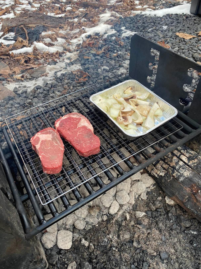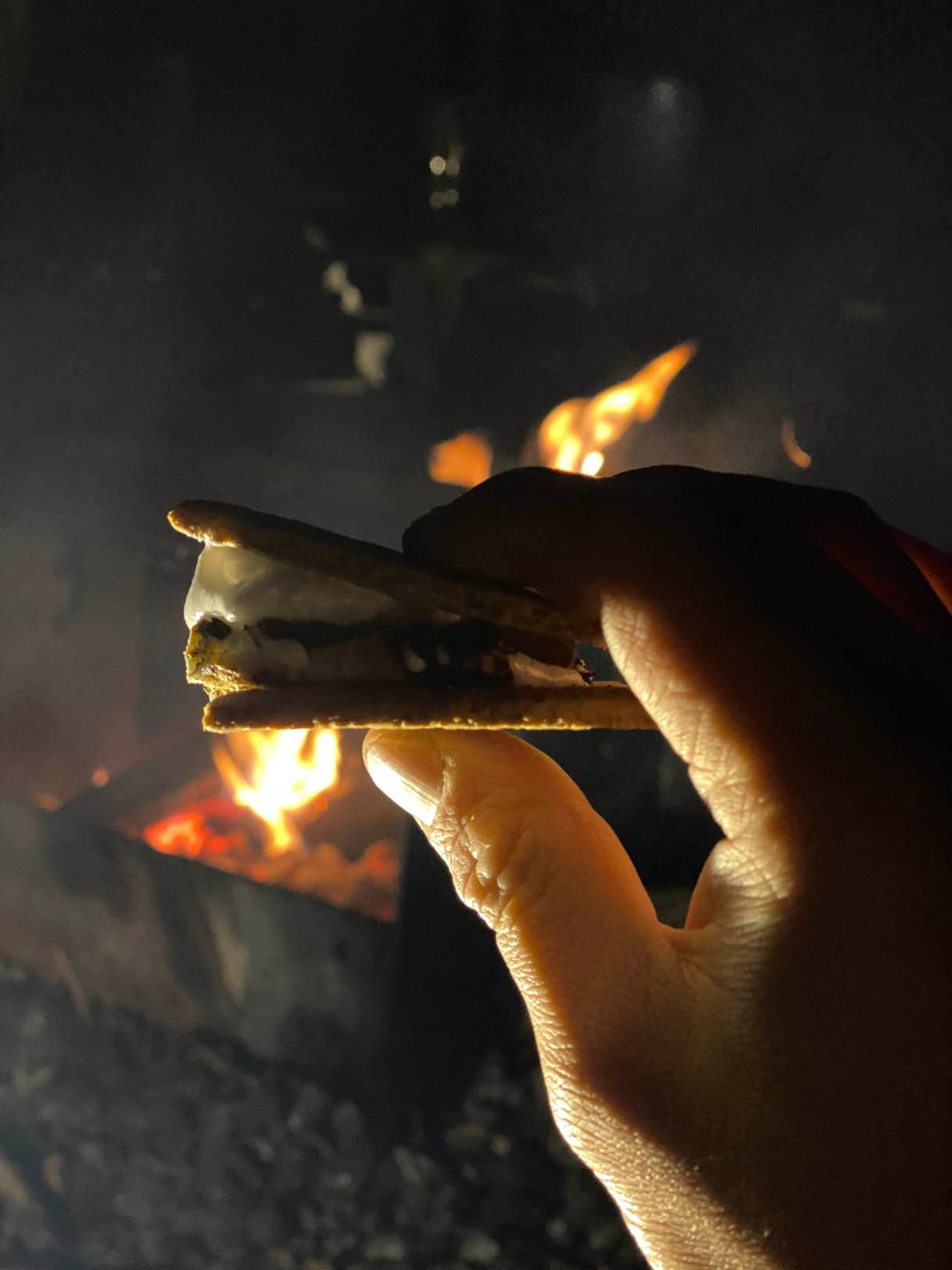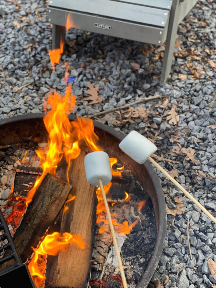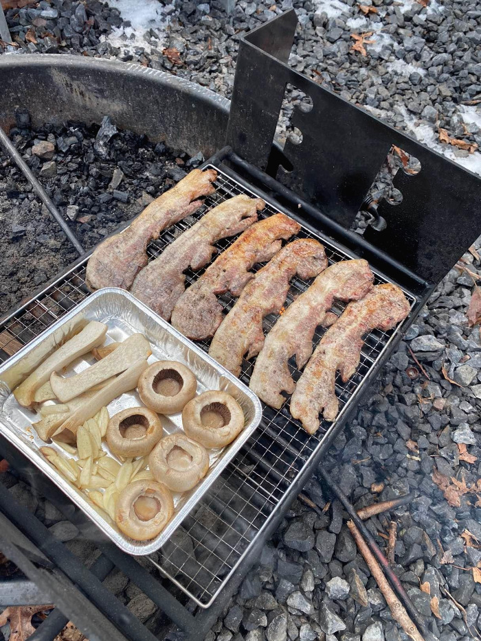 드디어 내가 가장 고대하던 바베큐 타임이 되었는데, 날씨가 추운 편이라 준비가 쉽지 않았다. 준비해 간 숯으로 삼겹살과 스테이크를 굽는데 열기가 조금 부족해서 쉽진 않았지만 제법 맛있는 식사를 즐길 수 있었다. 식사 후에 그곳에 있는 참나무 장작을 사용해 우리만의 작은 캠프파이어를 하고, 패키지 구매 선물로 딸려온 S'mores를 준비해서 먹을 수 있었다.