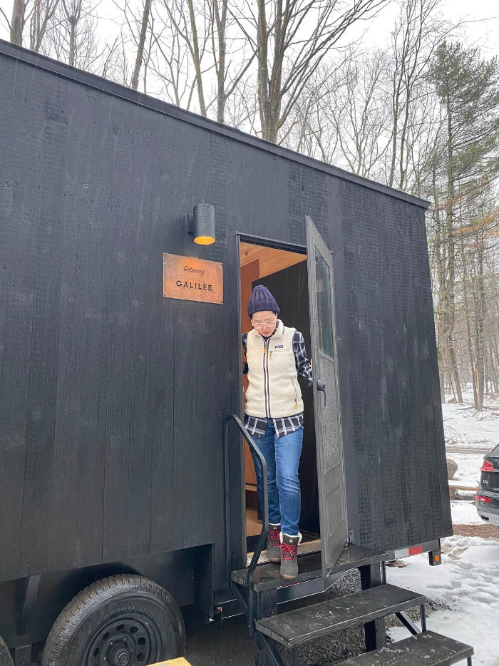 요즘 대도시 주변에서 1~2시간 이내에 있는 숲 속에 간이 통나무집처럼 트레일러를 꾸며 놓은 숙박 시설 회사인데, 침대 옆에 대형 창문을 통해 숲을 바라볼 수 있게 꾸며둔 것이 너무 멋져서 미국의 젊은 세대들을 중심으로 가보고 싶은 곳 리스트에 높은 인기를 구가하며 등장하였다. 바쁘고 번잡하며 나무 구경이 힘든 도시 생활에서 벗어나 조용한 자연 속에서 휴식을 취하고 싶은 직장인들을 중심으로 유행이 되었으며, 뉴욕 인근에도 2곳을 운영 중이라 이번에 방문을 계획하게 되었다. 처음 생긴 곳은 화장실이 매우 불편하다고 들었다. 용변을 본 후 하루에 한 번 포일로 감싸서 직접 버려야 한다는 이야기를 듣고 아무리 자연이 좋아도 너무 걱정이 되던 차에 이번에 같은 산의 반대편에 새로운 시설이 오픈했다고 하여 조사를 해보니 현대식 화장실과 샤워시설이 갖춰져 있다는 이야기를 듣고 곧바로 예약을 진행하였다.
