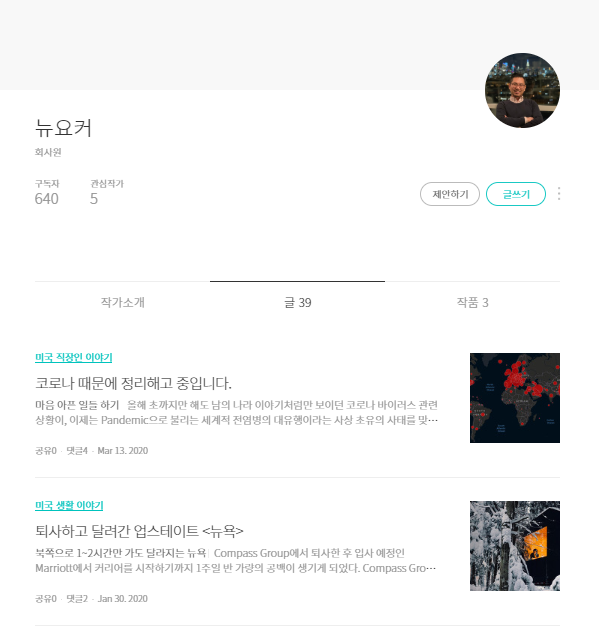 힘든 미국 생활을 하면서 느끼고 얻은 교훈들을 최대한 도움이 필요한 사람들과 나누고 싶었고, 그것이 내가 브런치를 시작한 가장 큰 이유였다. 브런치 작가가 되기로 결심한 것이 작년 이맘때쯤이었다. 2019년 3월 말 경에 그러한 고민을 하기 시작했고, 약 1개월 정도 생각을 해보고 글을 쓰기 시작했고, 첫 글은 4월 24일에 포스팅이 되었다. 그리고 오늘까지 회사를 2번이나 바꾸는 격변 속에서도 거의 40편의 글을 썼다.