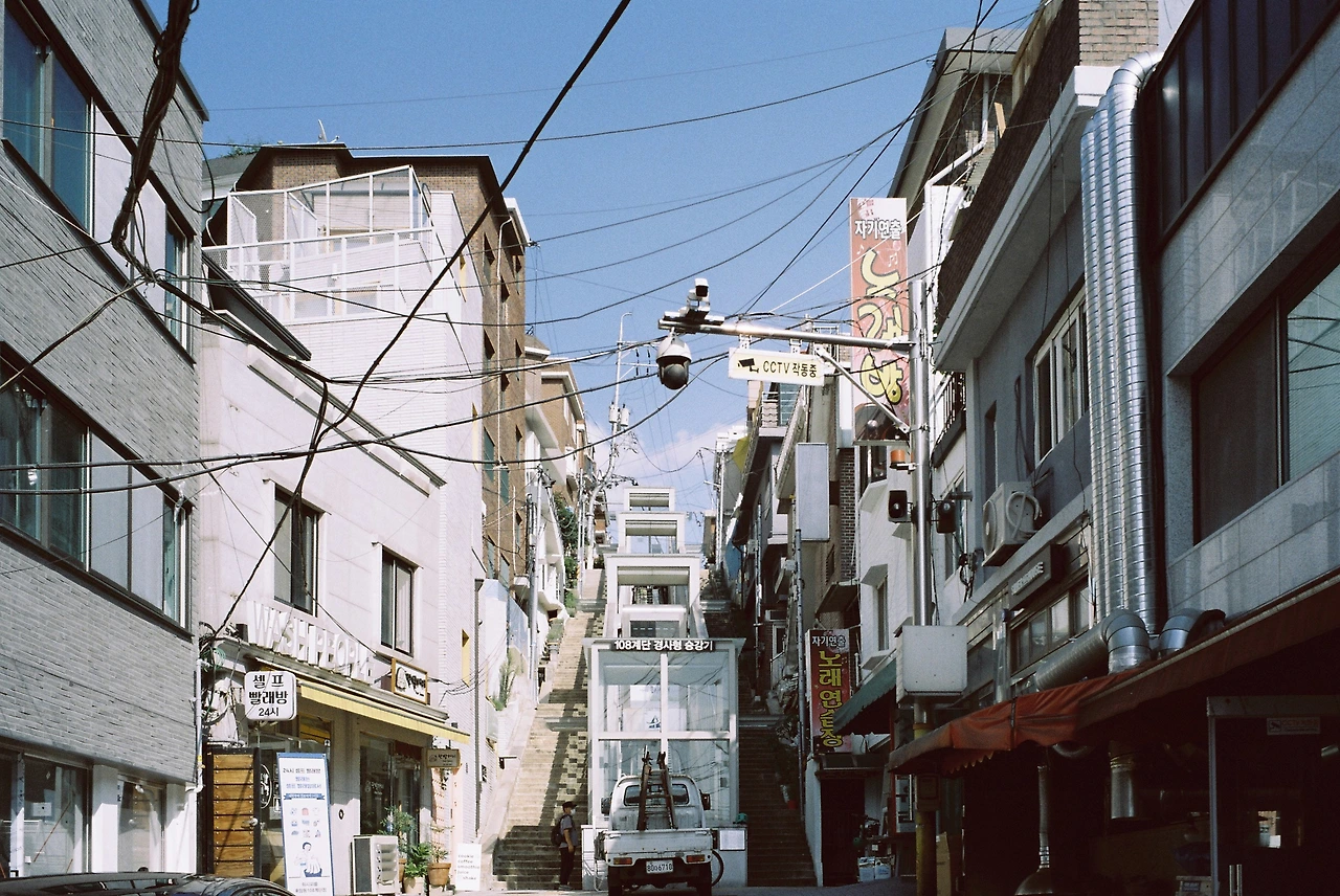 '난 108계단이 처음이었지' 하는 생각이 108계단을 향해 걸어가던 중에 처음으로 생각났다. 보통 이태원과 해방촌을 타고 넘어가곤 했는데 이 길목은 처음이었다. 일년 일년 나이가 들어갈 수록 '난 이걸 여태 한번도 안해봤나' 하는 생각이 남다르게 다가온다. 잠시 108계단 앞으로 보이는 언덕을 지긋히 응시하며 새로운 것을 접하는 마음이 언제부터 그렇게 변해왔나 그런 생각을 해본다. 어쩌면 하필 그런 생각을 하면서 바로 앞에 보이는 것이 넘어서야만 할 언덕이었다는 사실에 좀 더 막막한 생각이 자리 잡았는지도 모른다. 그런 나의 조급함을 전혀 모르겠다는 듯 108계단의 엘레베이터는 느릿느릿 청파동 중심부를 향해 오르기 시작했다.
